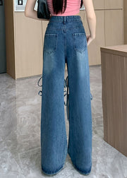 Modern Blue Bow Hole High Waist Denim Pants Summer