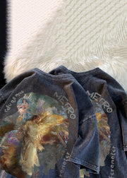New Black O Neck Print Loose Denim Men T Shirts Summer