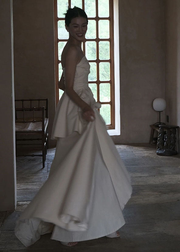 Simple White Bustier Top Flattering Satin Long Dresses Sleeveless