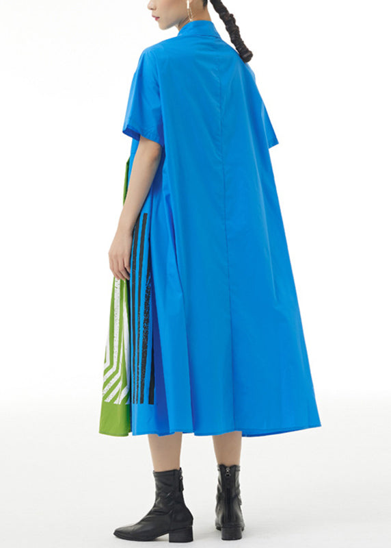 Women Black Print Patchwork Striped Cotton Maxi Shirt Dress Summer