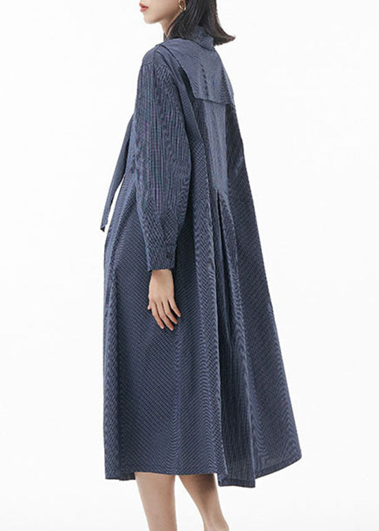 Lässiger blauer Peter Pan-Kragen gestreiftes Patchwork-Hemd Kleider Frühling