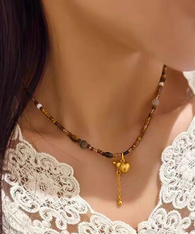 Chinese Style Brown Copper Overgild Calabash Beading Pendant Necklace