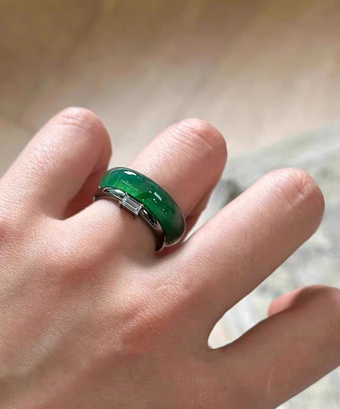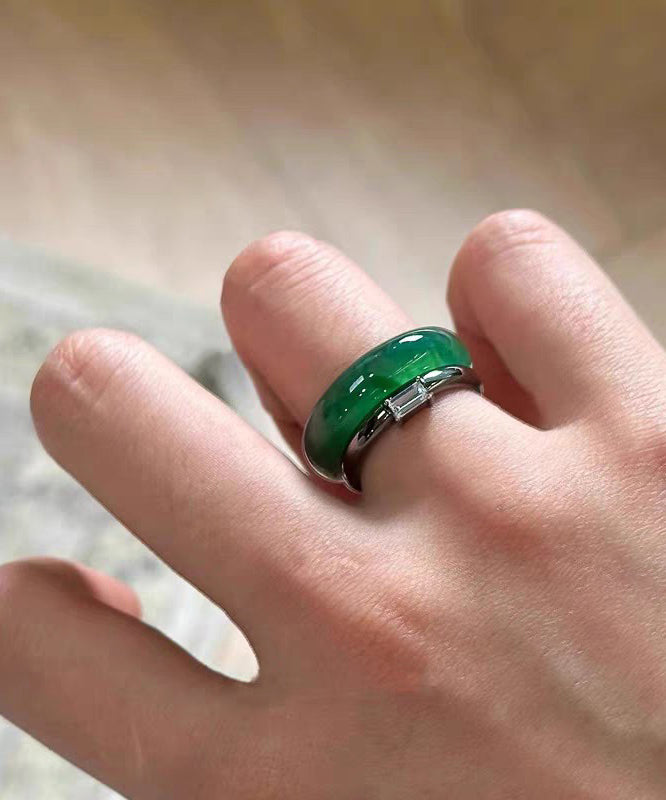 Chinese Style Green Alloy Jade Rings Two-Piece Set