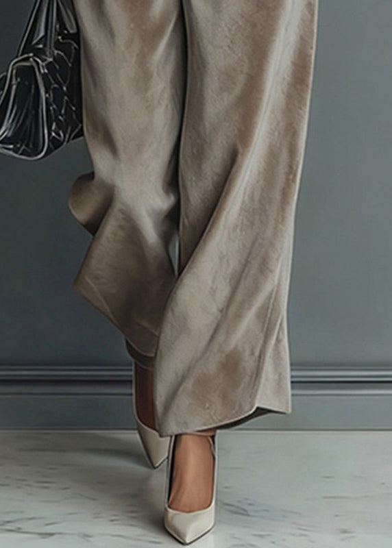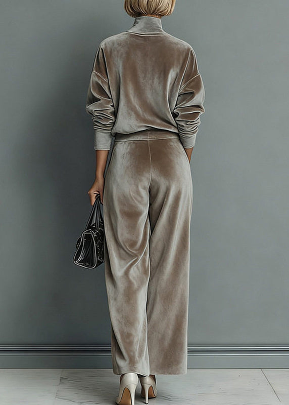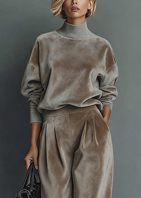 Loose Grey Turtleneck Patchwork pullover And Wide Leg Pants Two Pieces Set Spring