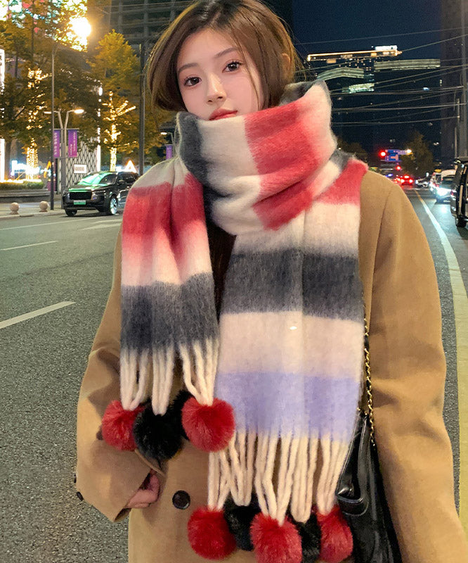 New Orange Fuzzy Ball Decorated Thick Warm Faux Cashmere Scarf