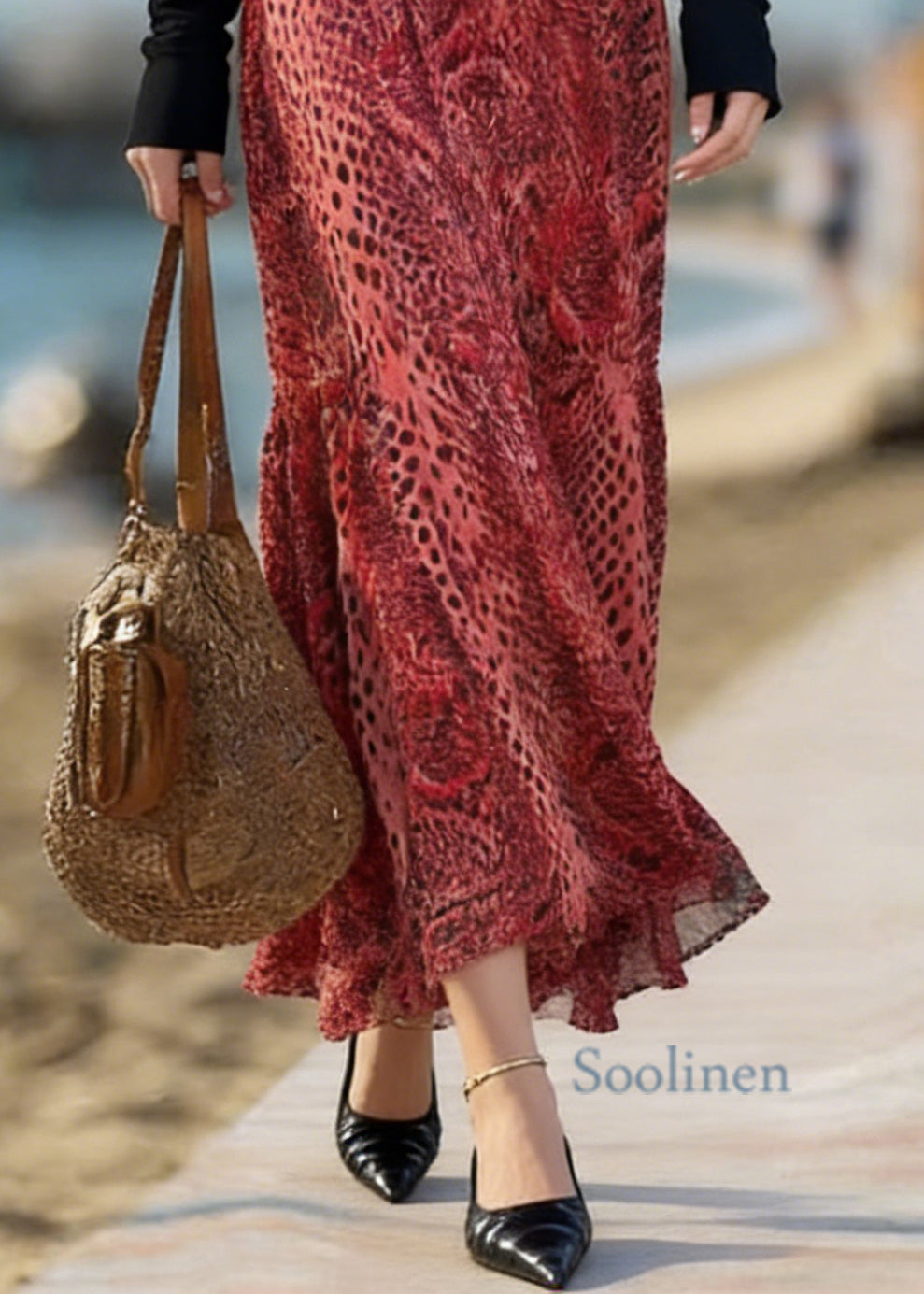 Novelty Red Print High Waist A Line Skirt Spring