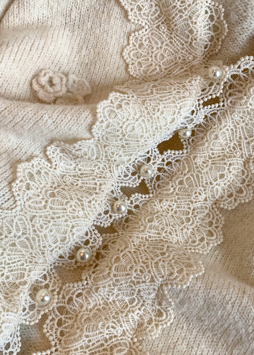 Apricot Floral Button Patchwork Knit Winter Coat V Neck