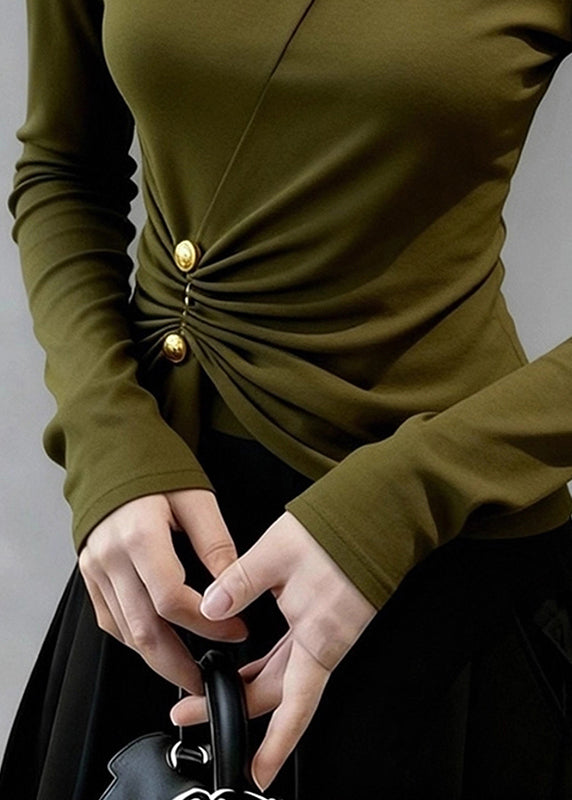 Slim Fit Green Original Design Wrinkled Cotton T Shirts Fall