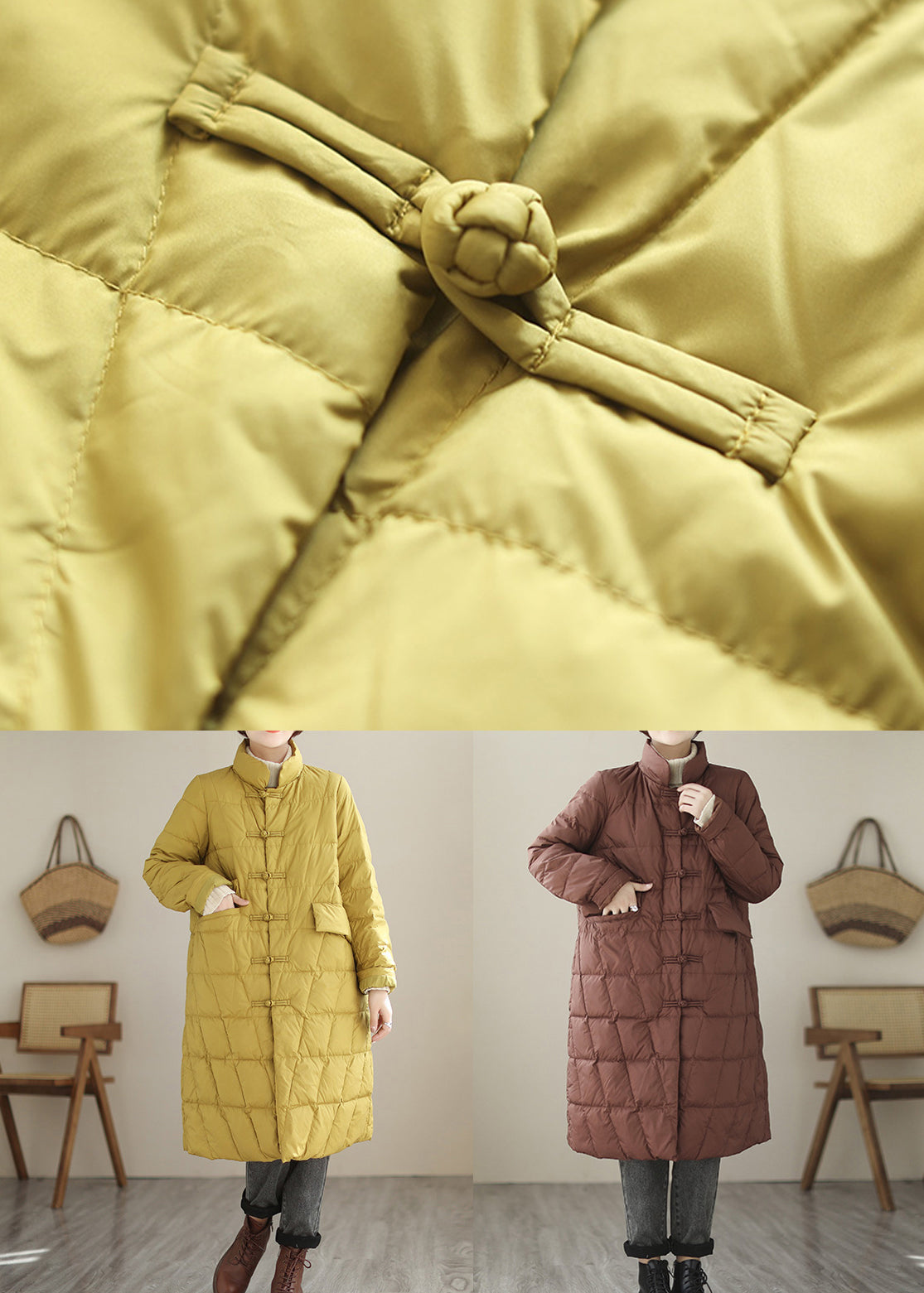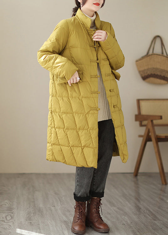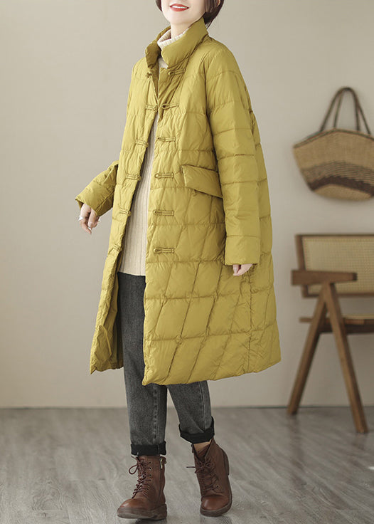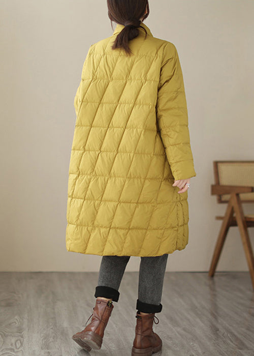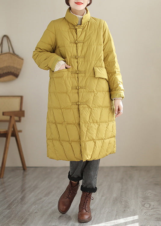 New Yellow Button Pockets Patchwork Cotton Filled Parka Fall