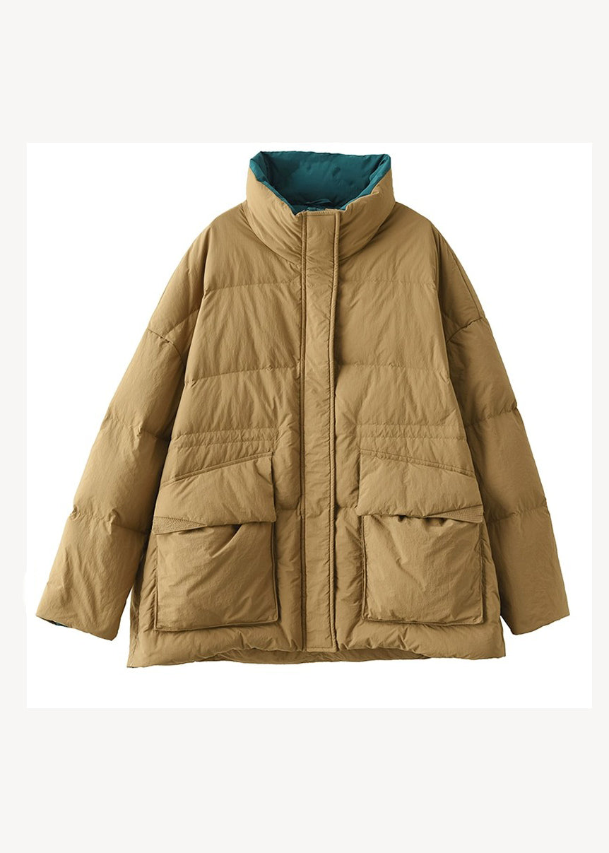 Plus Size Yellow Zip Up Pockets Fine Cotton Filled Jacket Winter