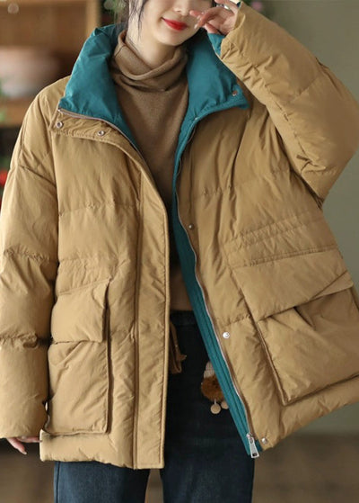 New Yellow Button Pockets Patchwork Cotton Filled Parka Fall