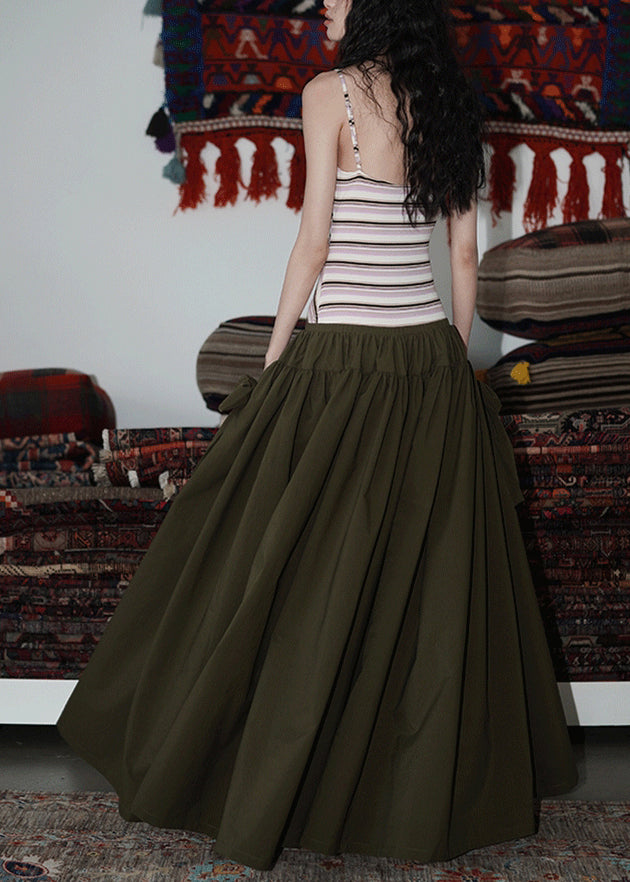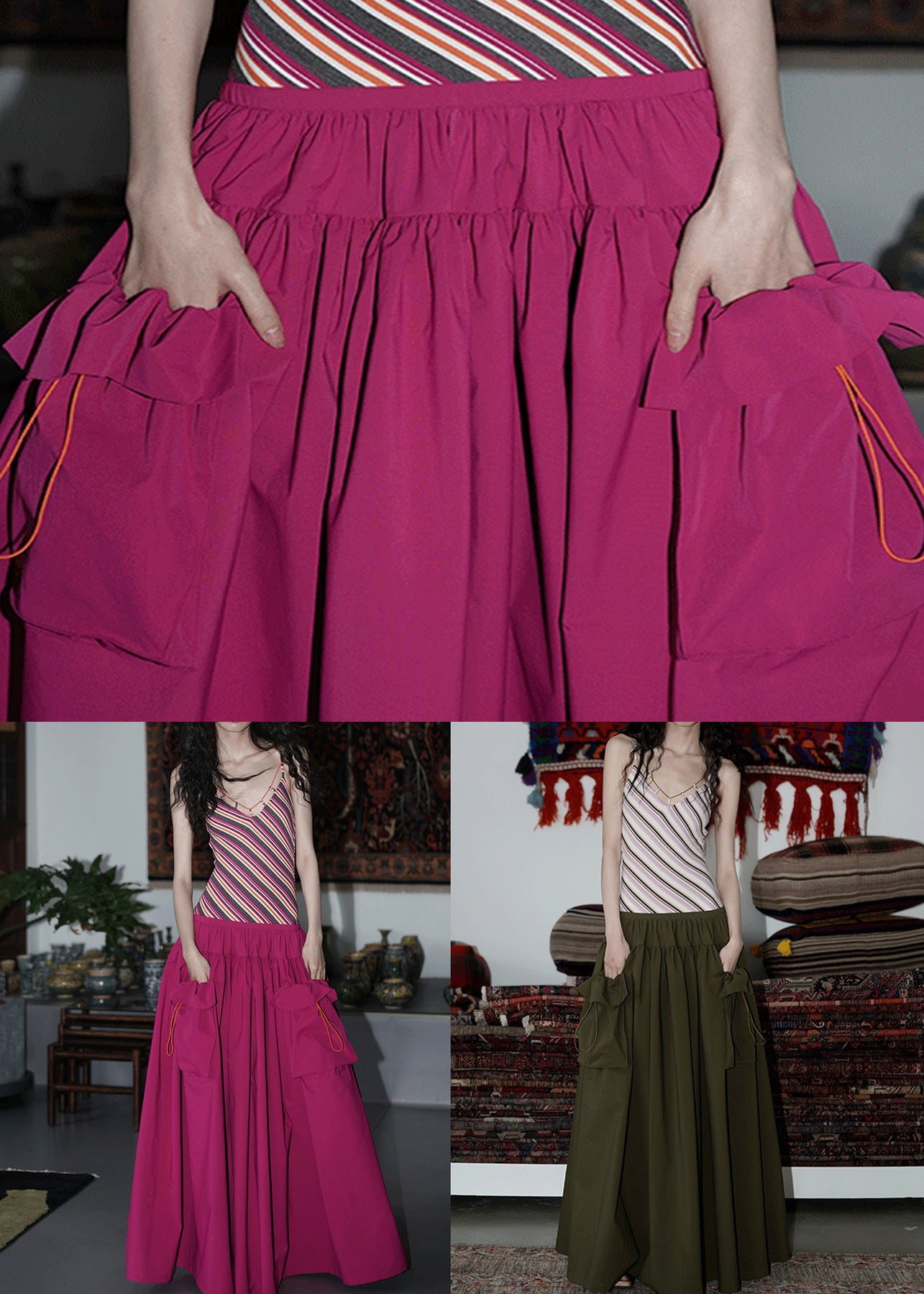 Army Green Pockets Patchwork Cotton Spaghetti Strap Dress V Neck Summer