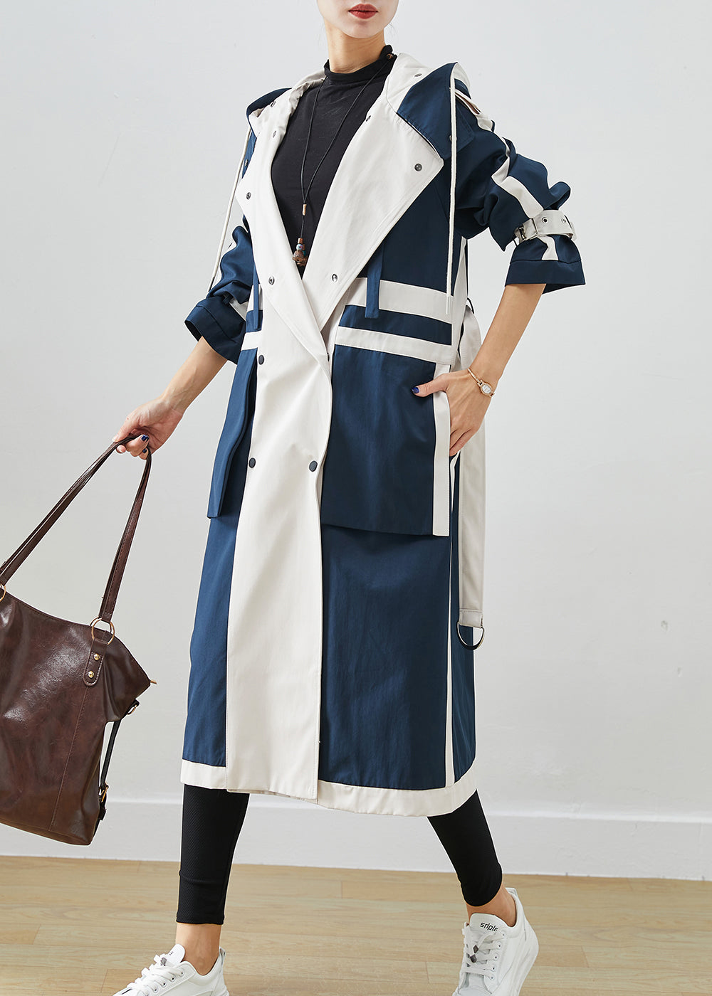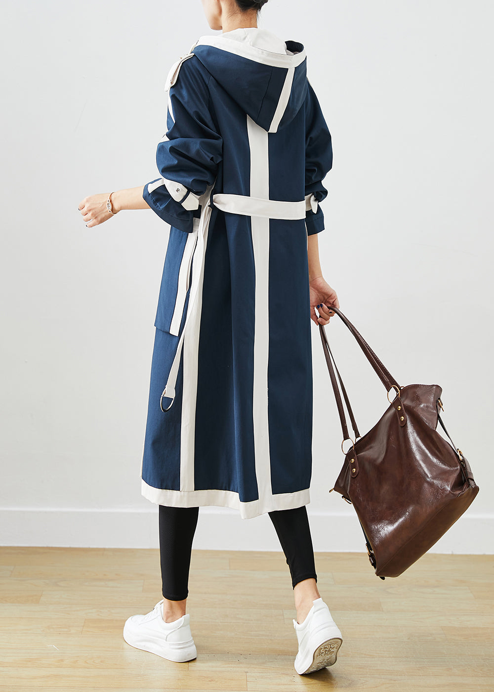 Chic Navy Oversized Patchwork Original Design Cotton Trench Coats Fall