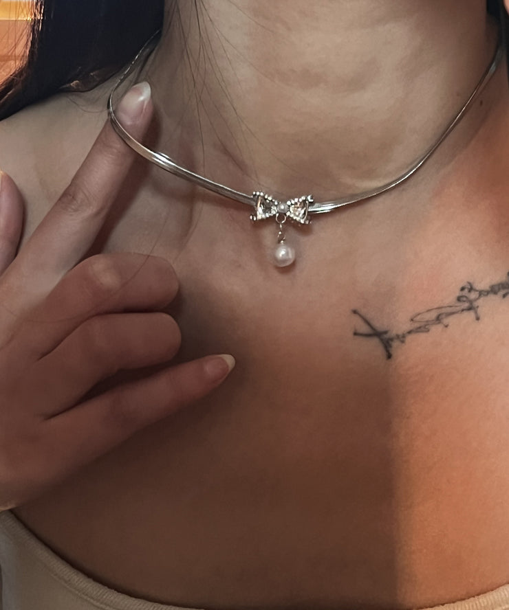 Fink Silk Stainless Steel Pearl Bow Pendant Necklace