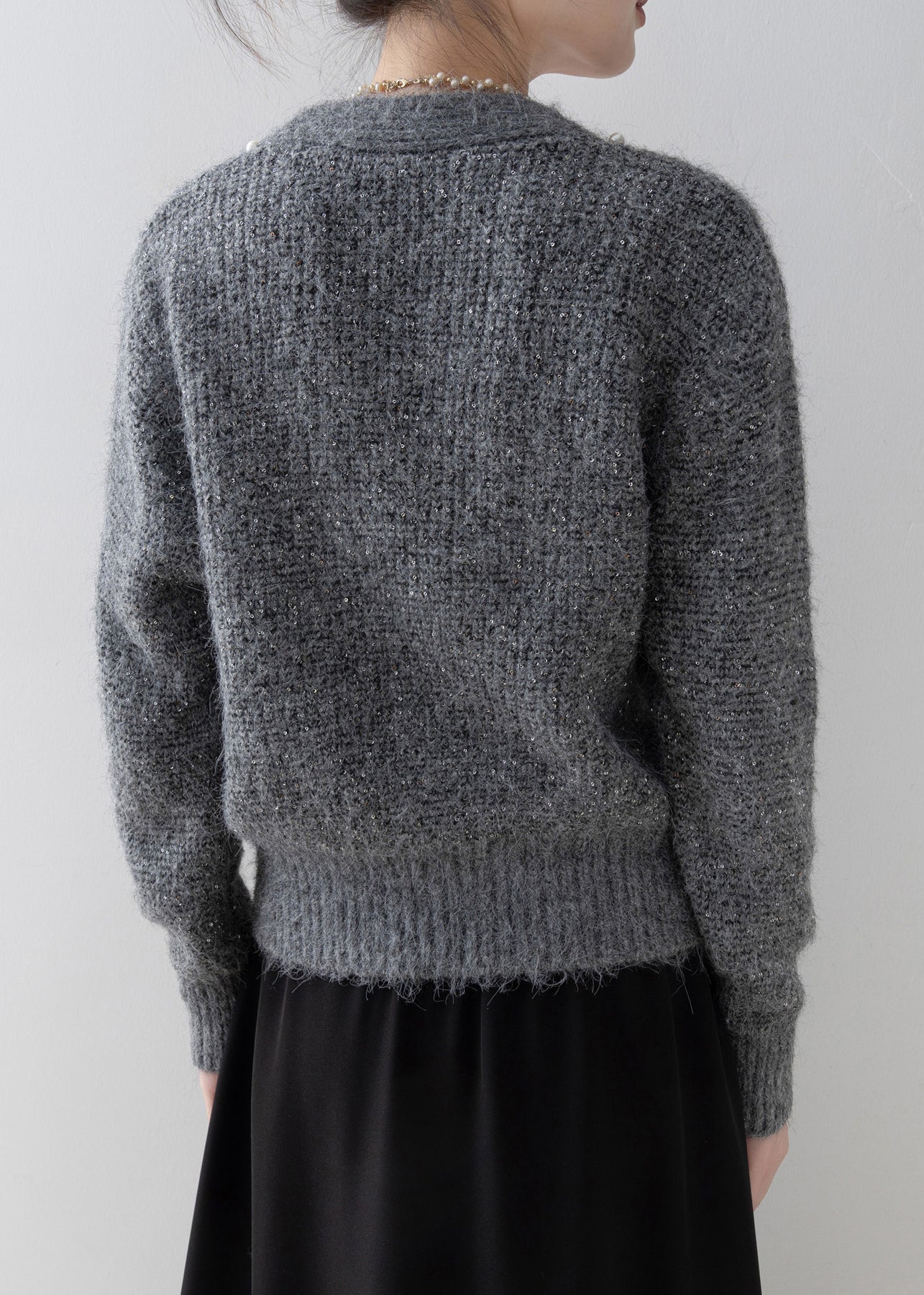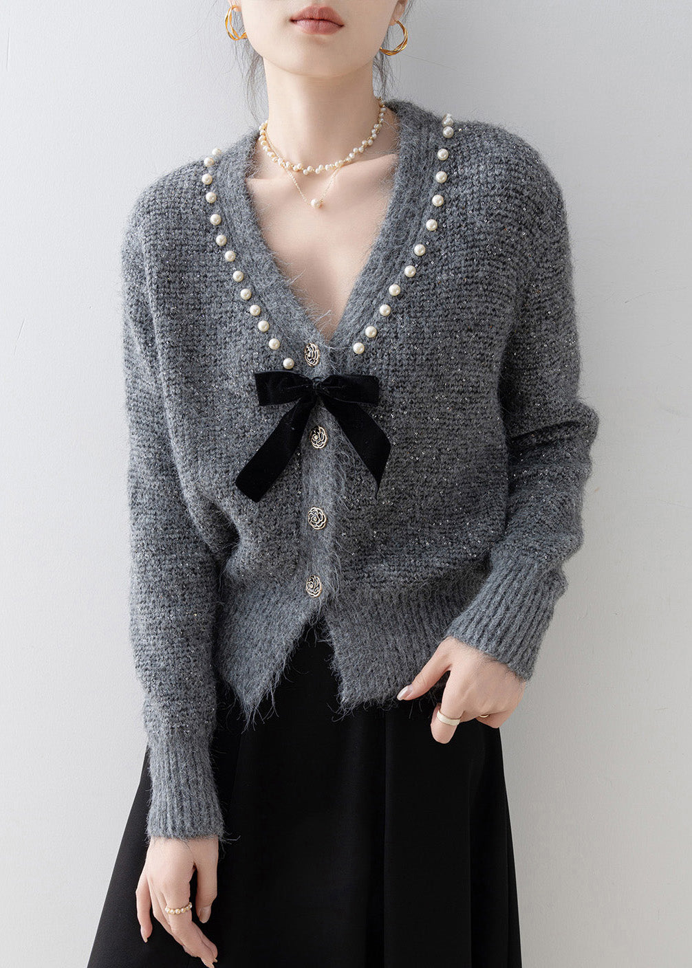 Boutique Dark Grey V Neck Nail Bead Knit Cardigan Spring