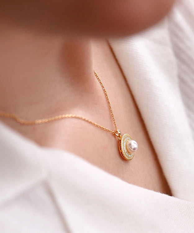 Beautiful Round Pearl Adjustable Gold Plated Pendant Necklace