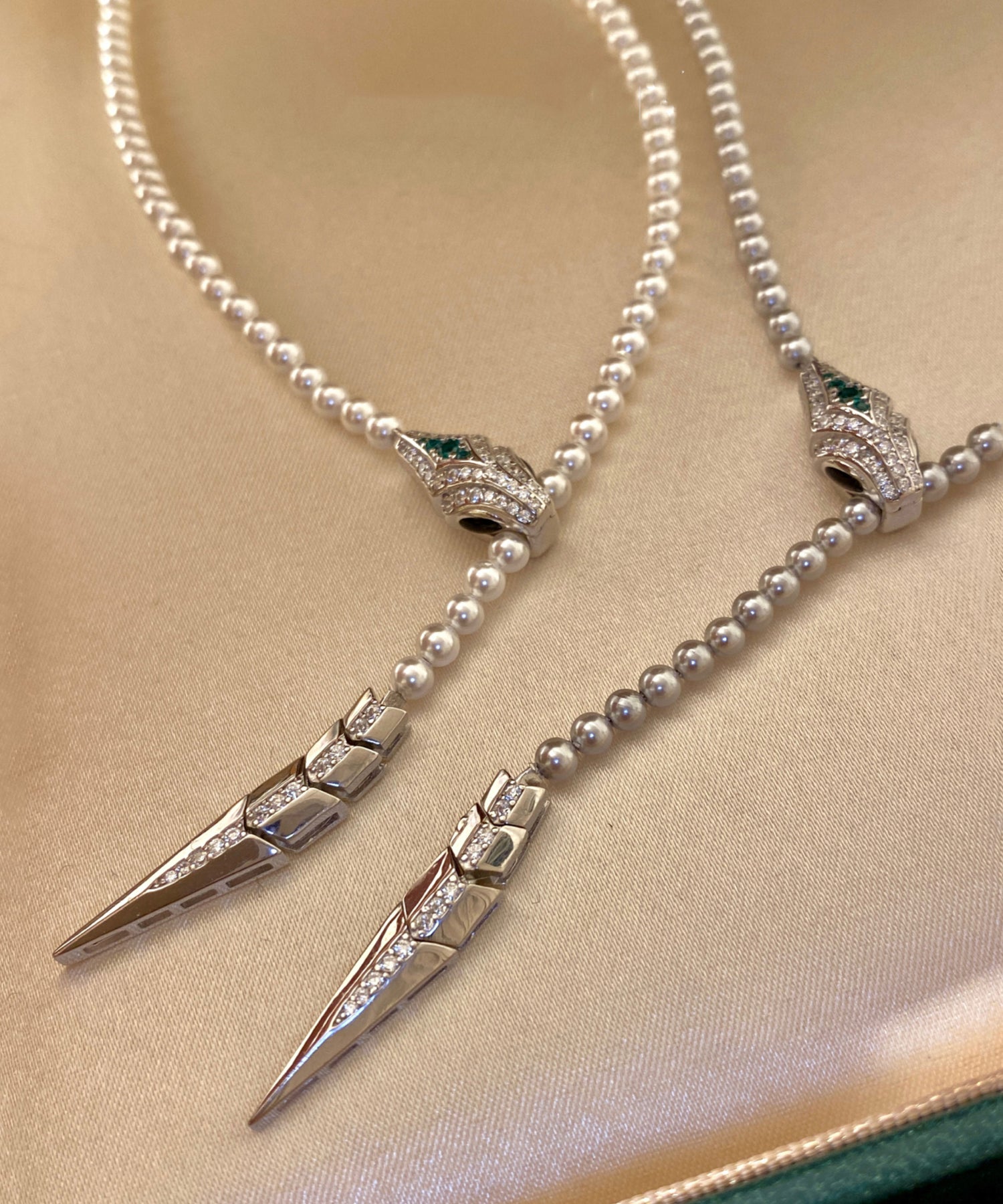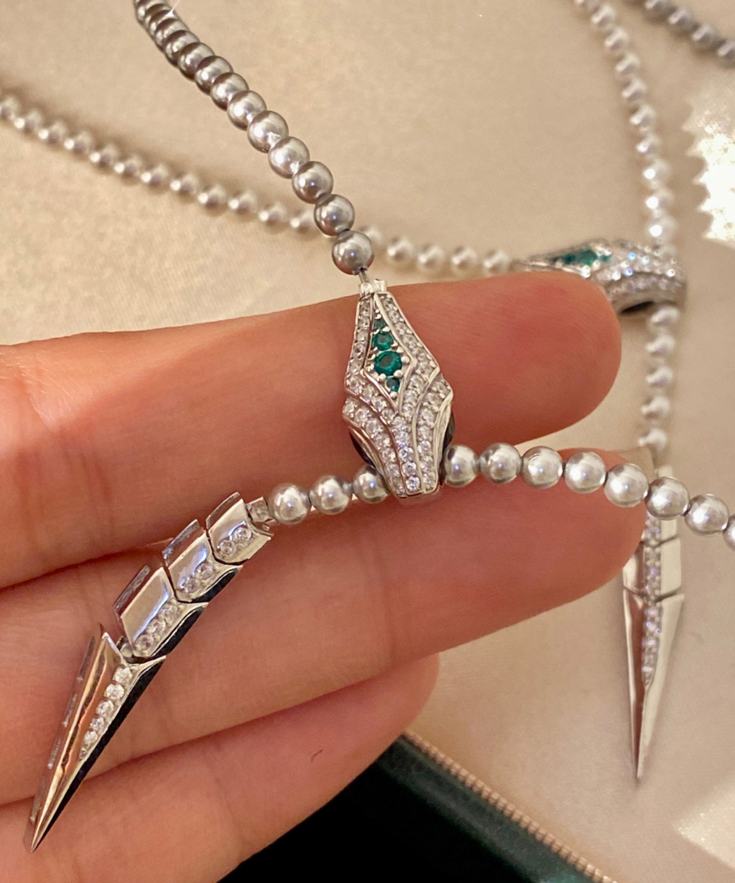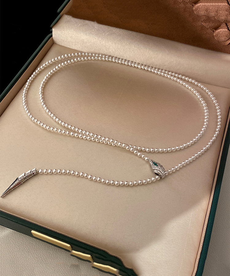 Boutique White Pearl Spirit Snake Zircon Sweater Chain Alloy Necklace