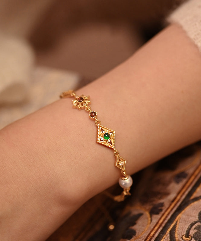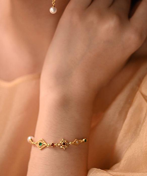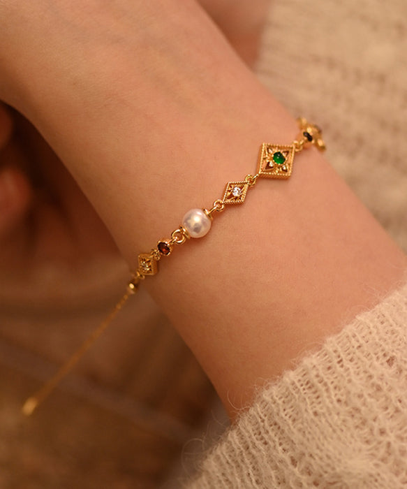 Chic Geometric Pearl Gem Stone Adjustable Gold Plated Bracelet