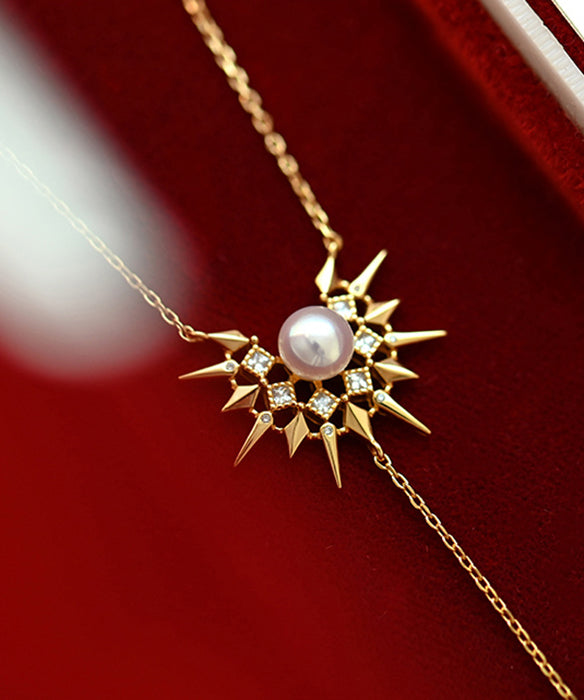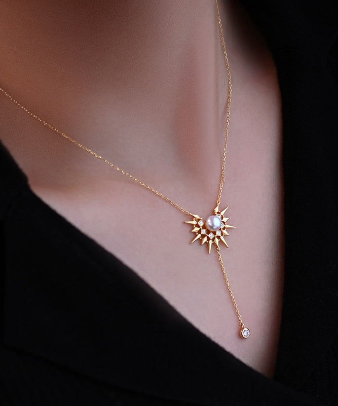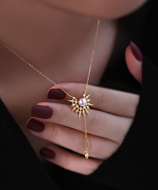 Chic Little Sun Pearl Adjustable Gold Plated Pendant Necklace