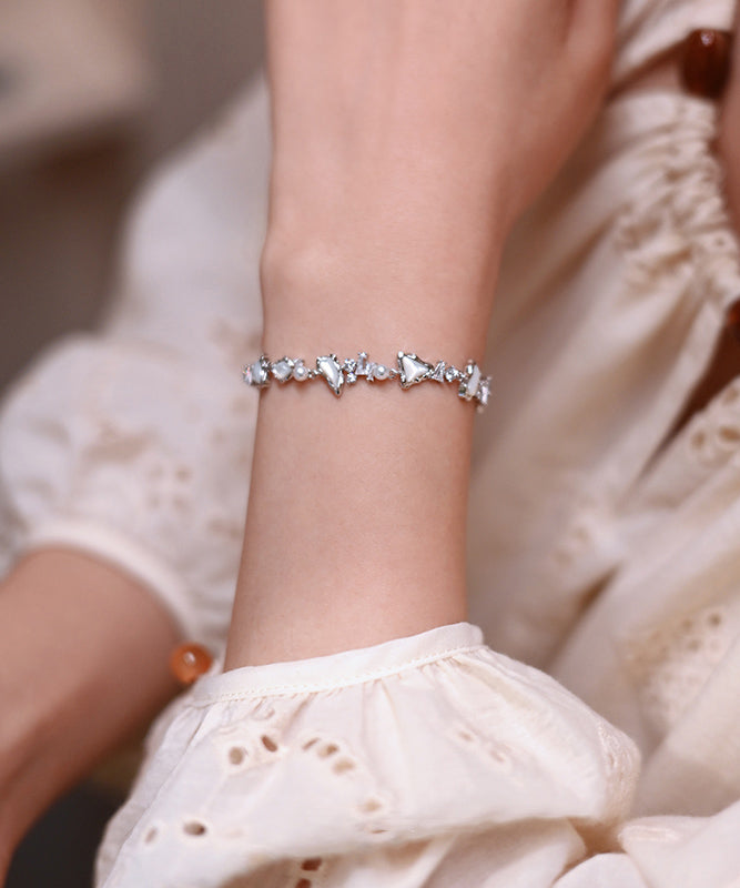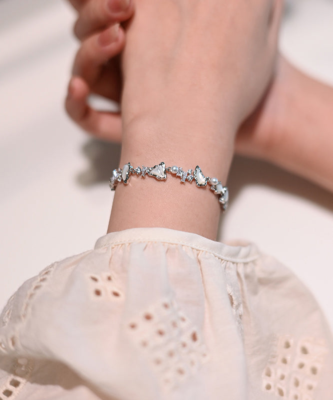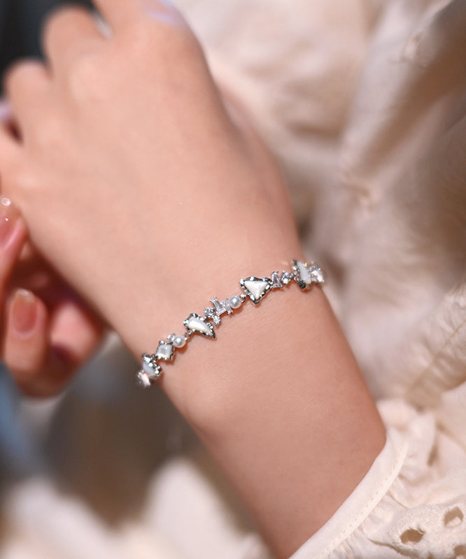 Chic White Natural Freshwater Pearl Mother Of Pearl Zircon Adjustable Silver Bracelet