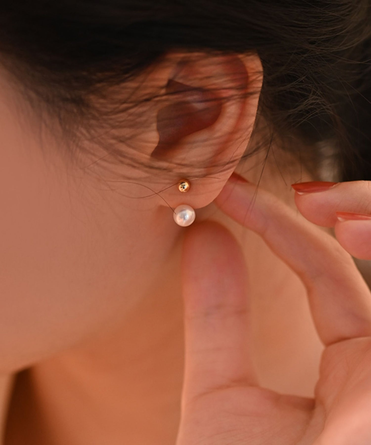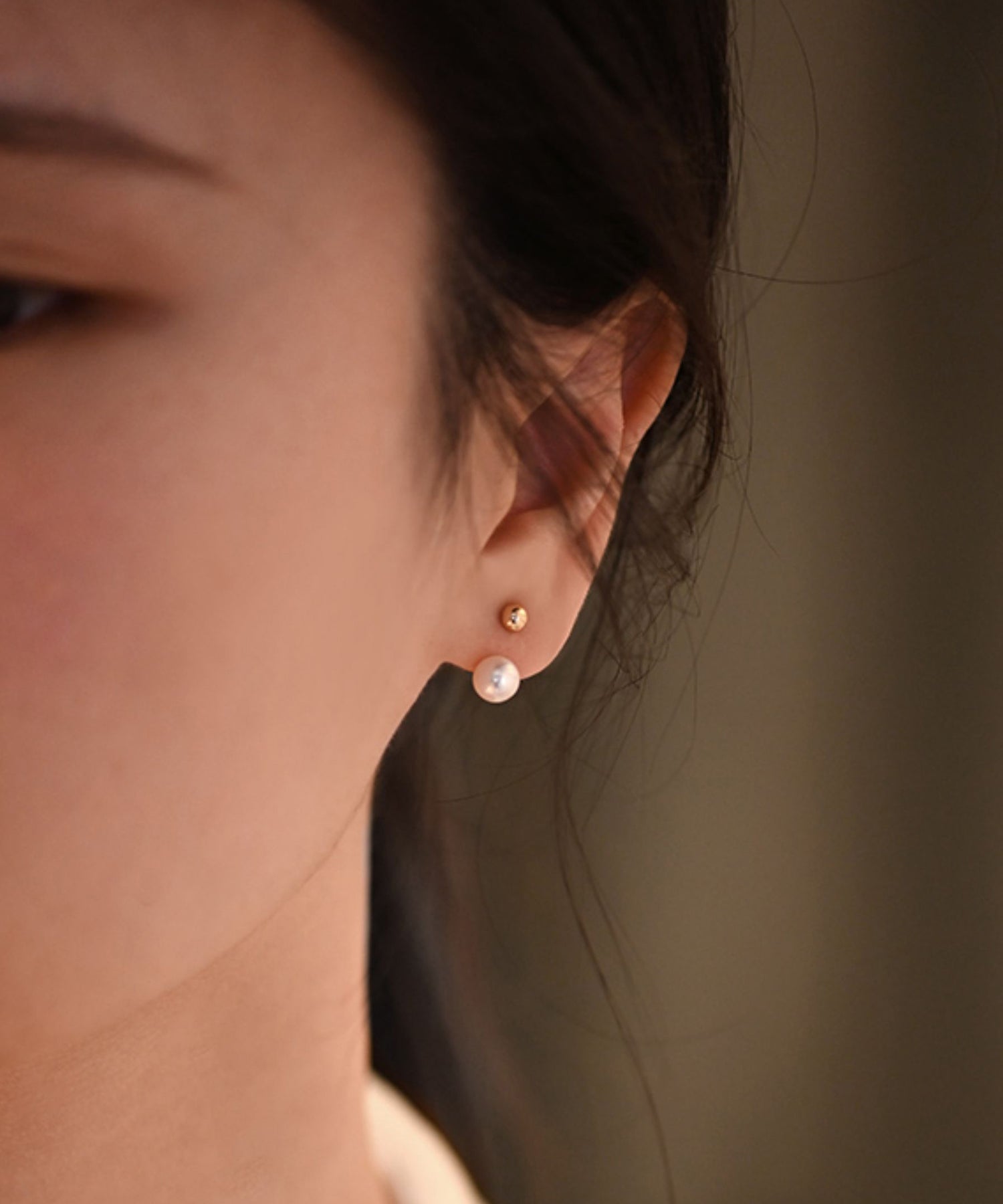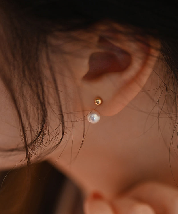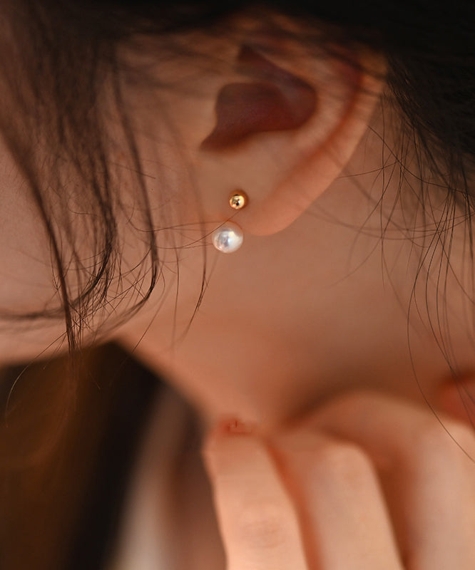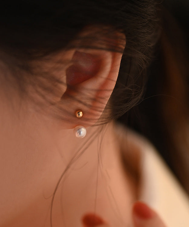 Elegant Sphere Rear Mounted Pearl Gold Plated Stud Earrings