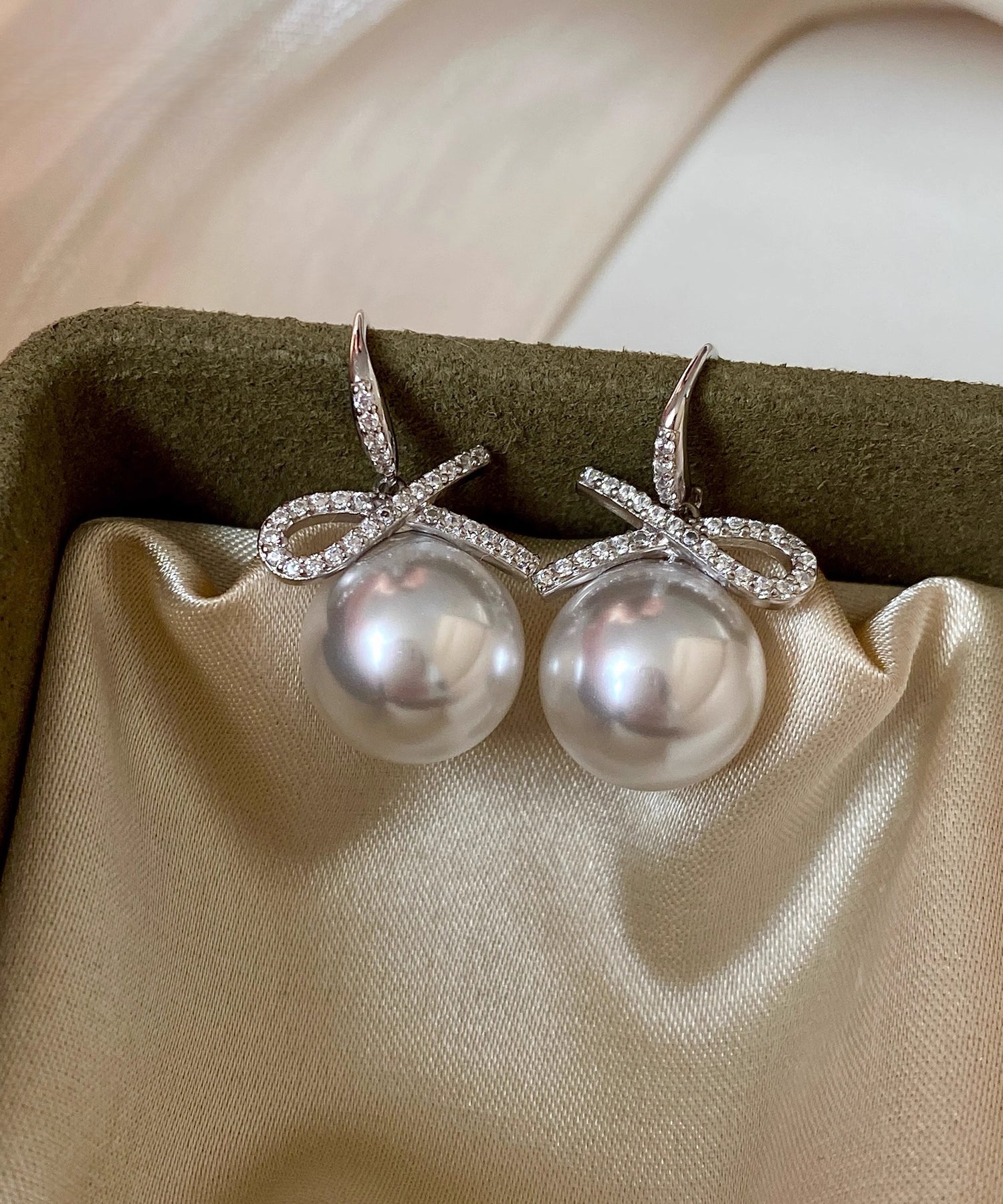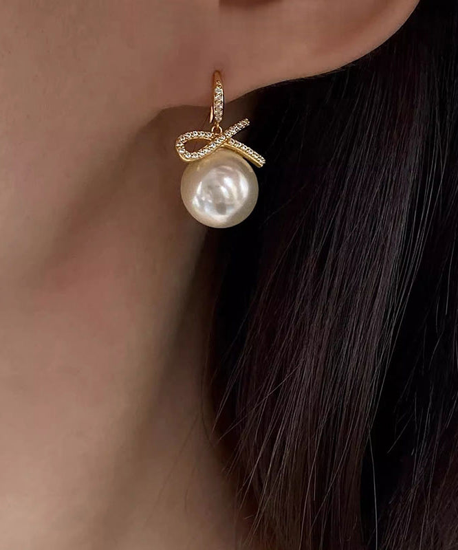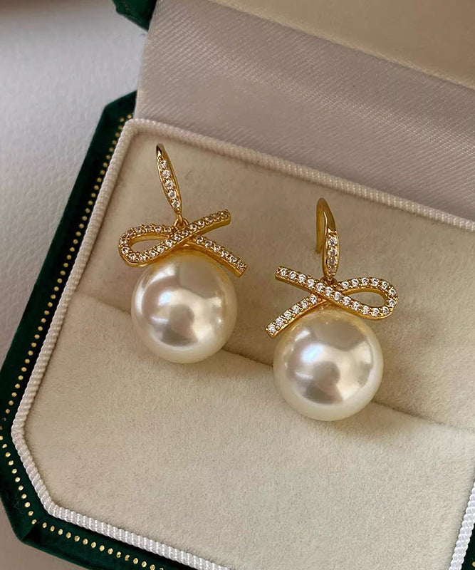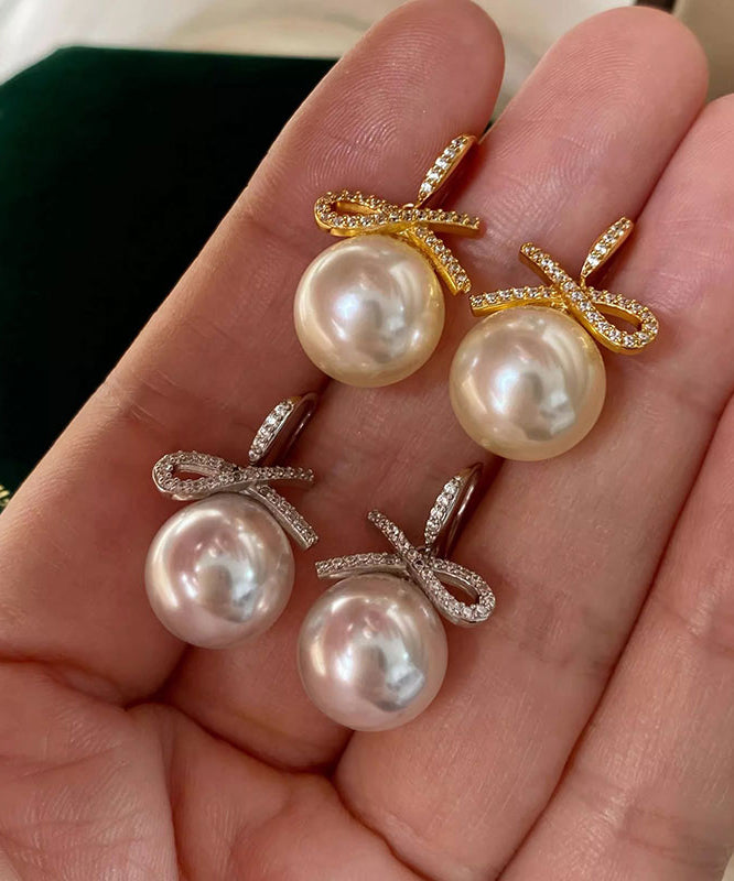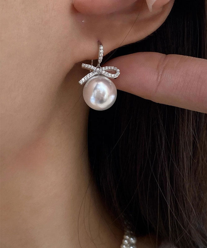 Fashion Silver Zircon Bow Pearl Silver Drop Earrings