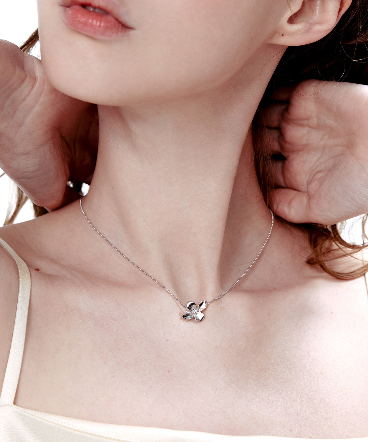 Floral Small Round Bead Thread Copper Plated Small Pendant Fine Choker