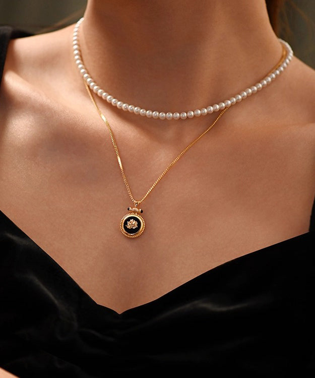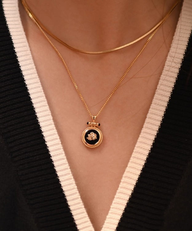 New Black Onyx Roses Adjustable14K Gold Pendant Necklace
