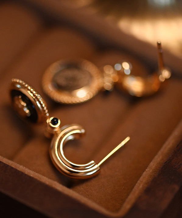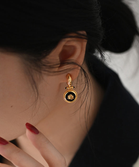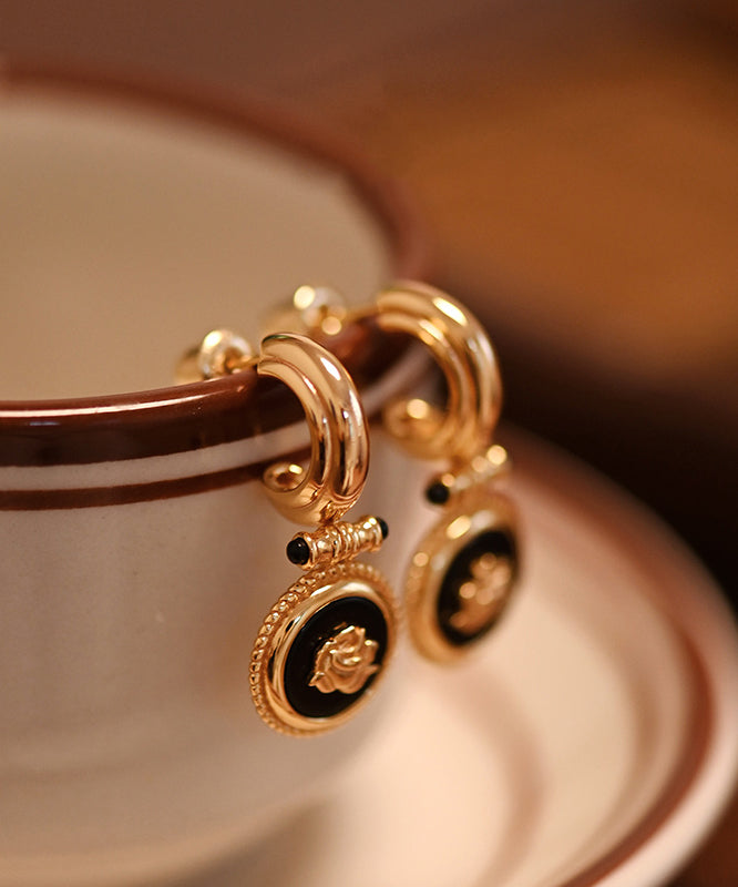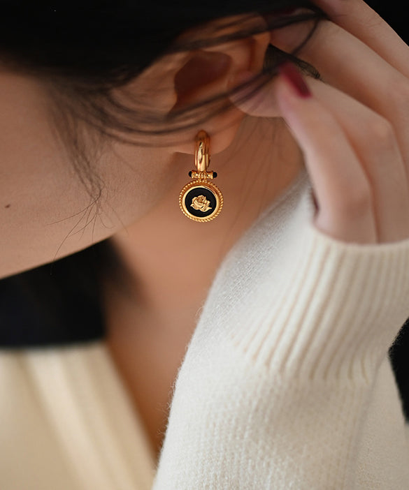 Original Design Black Onyx Roses Gold Plated Drop Earrings