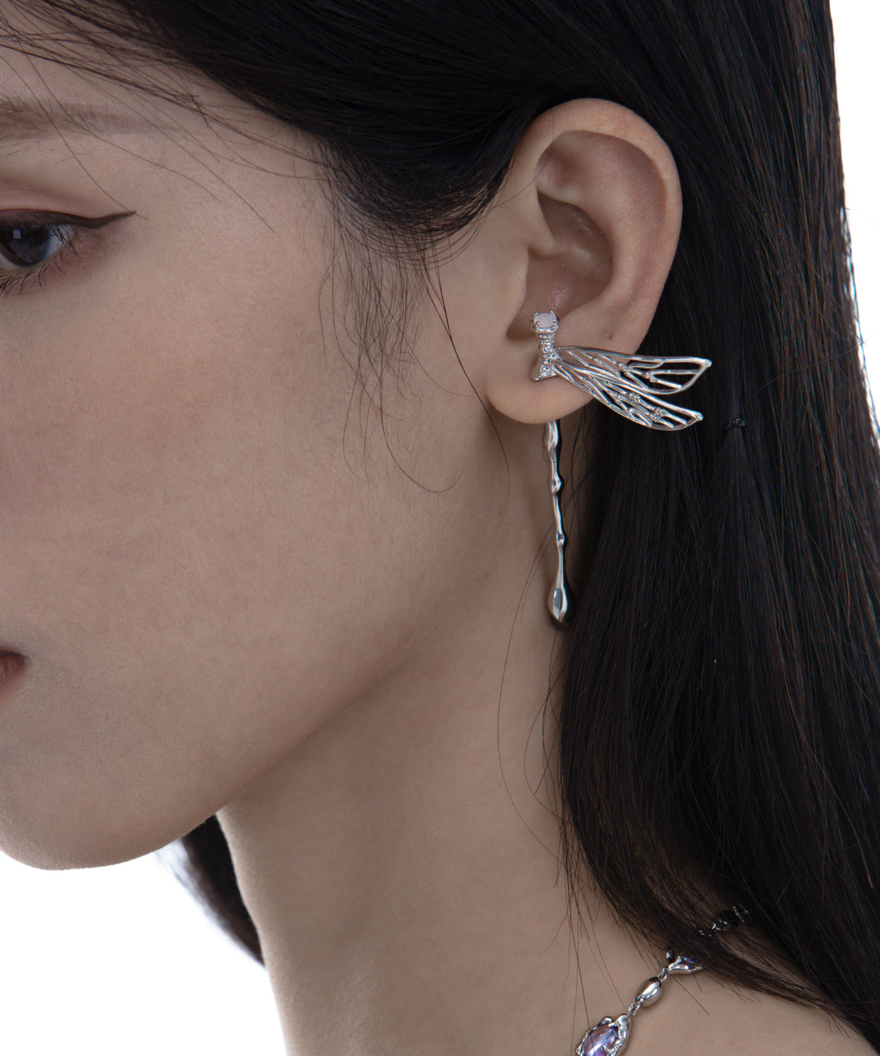 Original Design Dragonfly Hollow Out Silver Single Stud Earrings