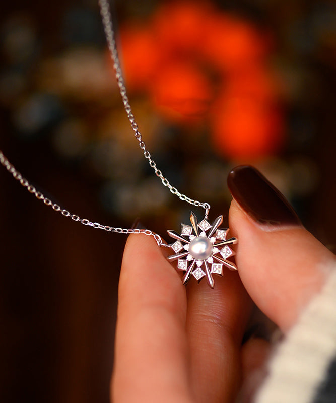 Romantic Christmas Snowflakes Pearl Adjustable Silver Pendant Necklace