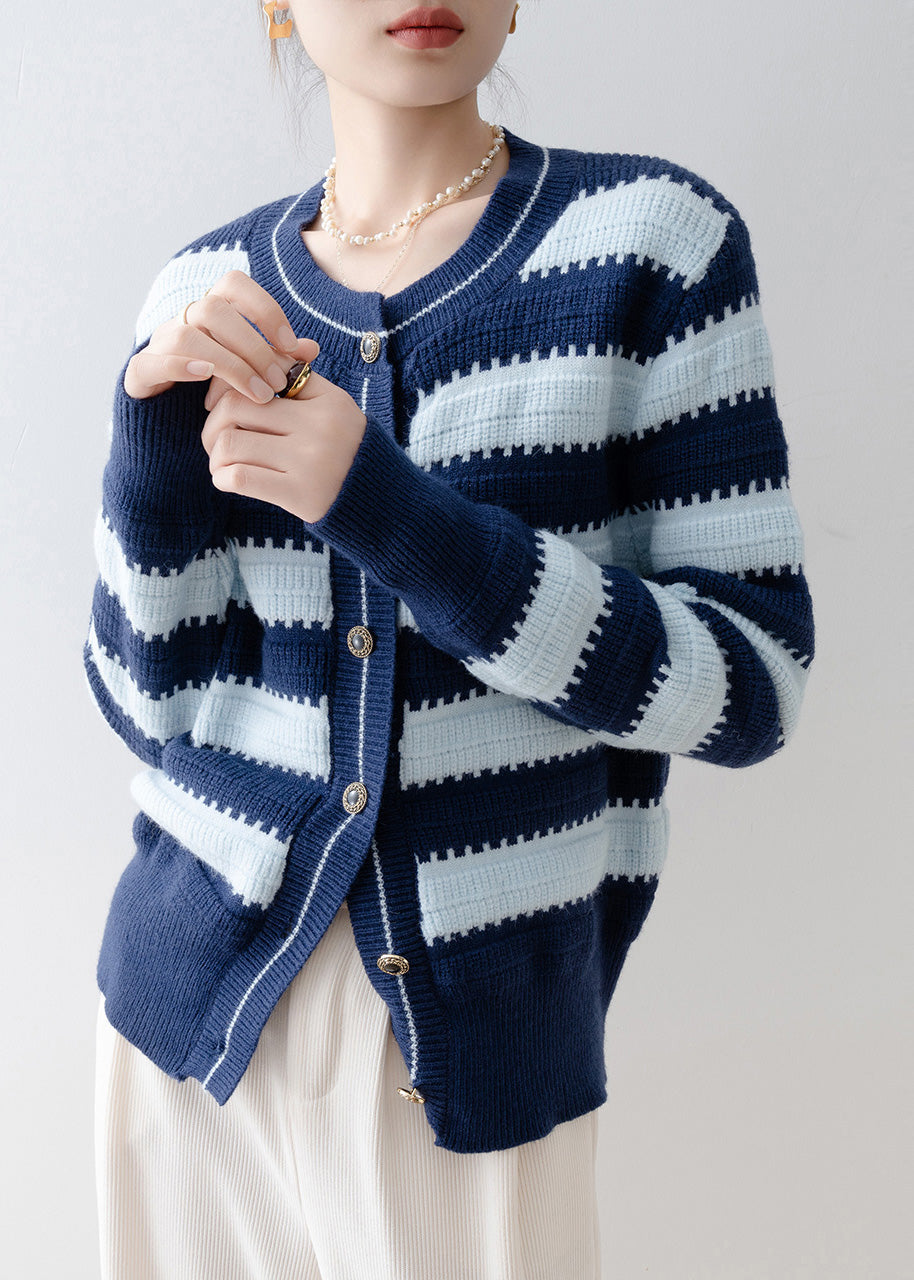 Italian Navy Oversized Striped Knit Cardigans Winter