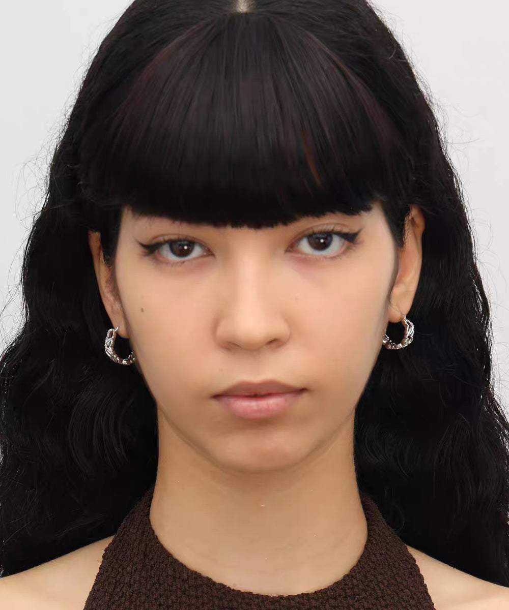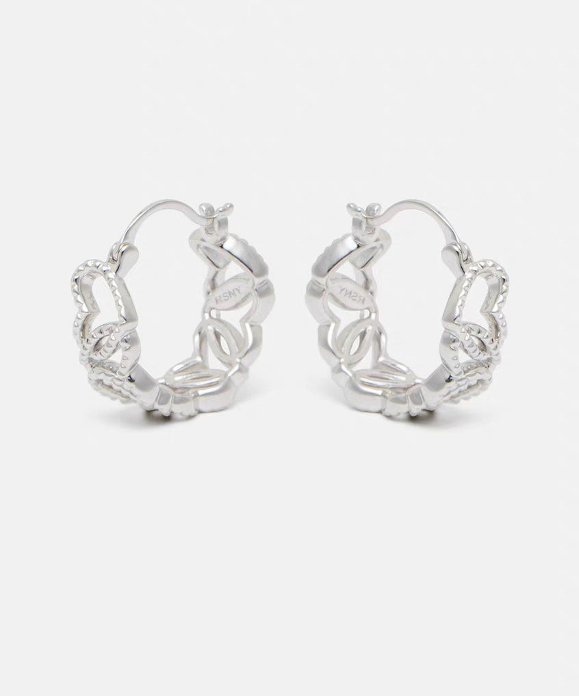Fine Silk Sterling Silver Hollow Out Love Hoop Earrings