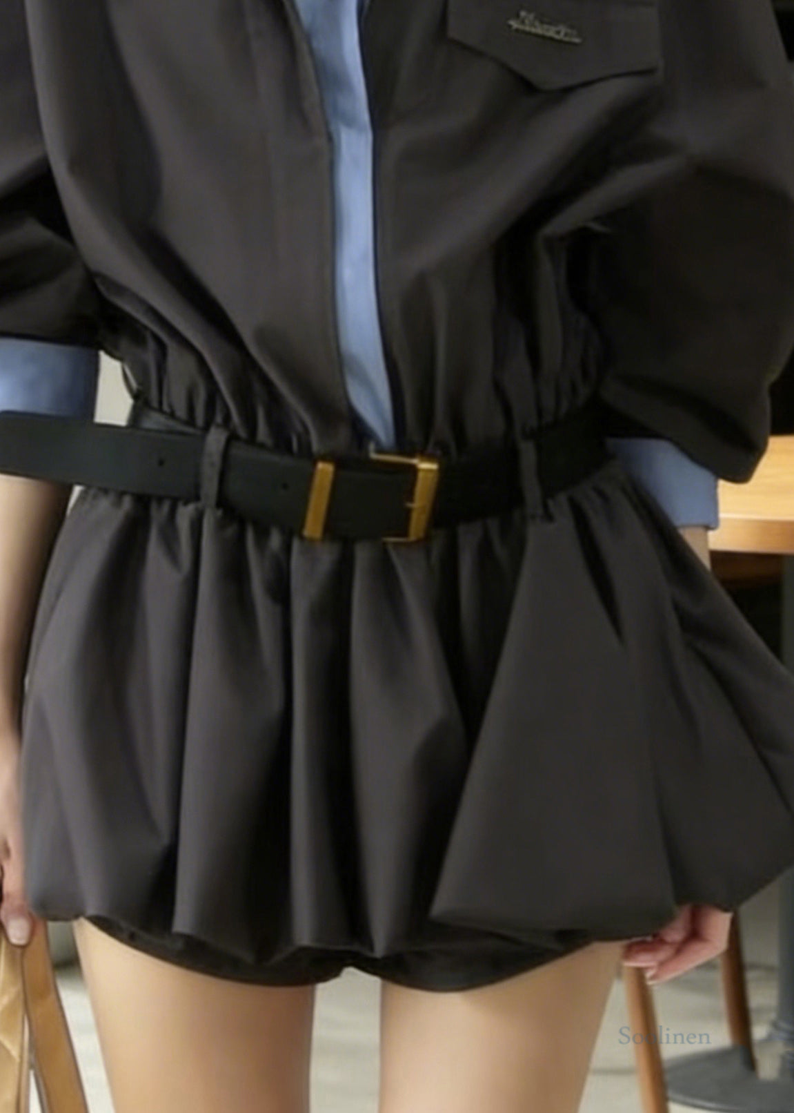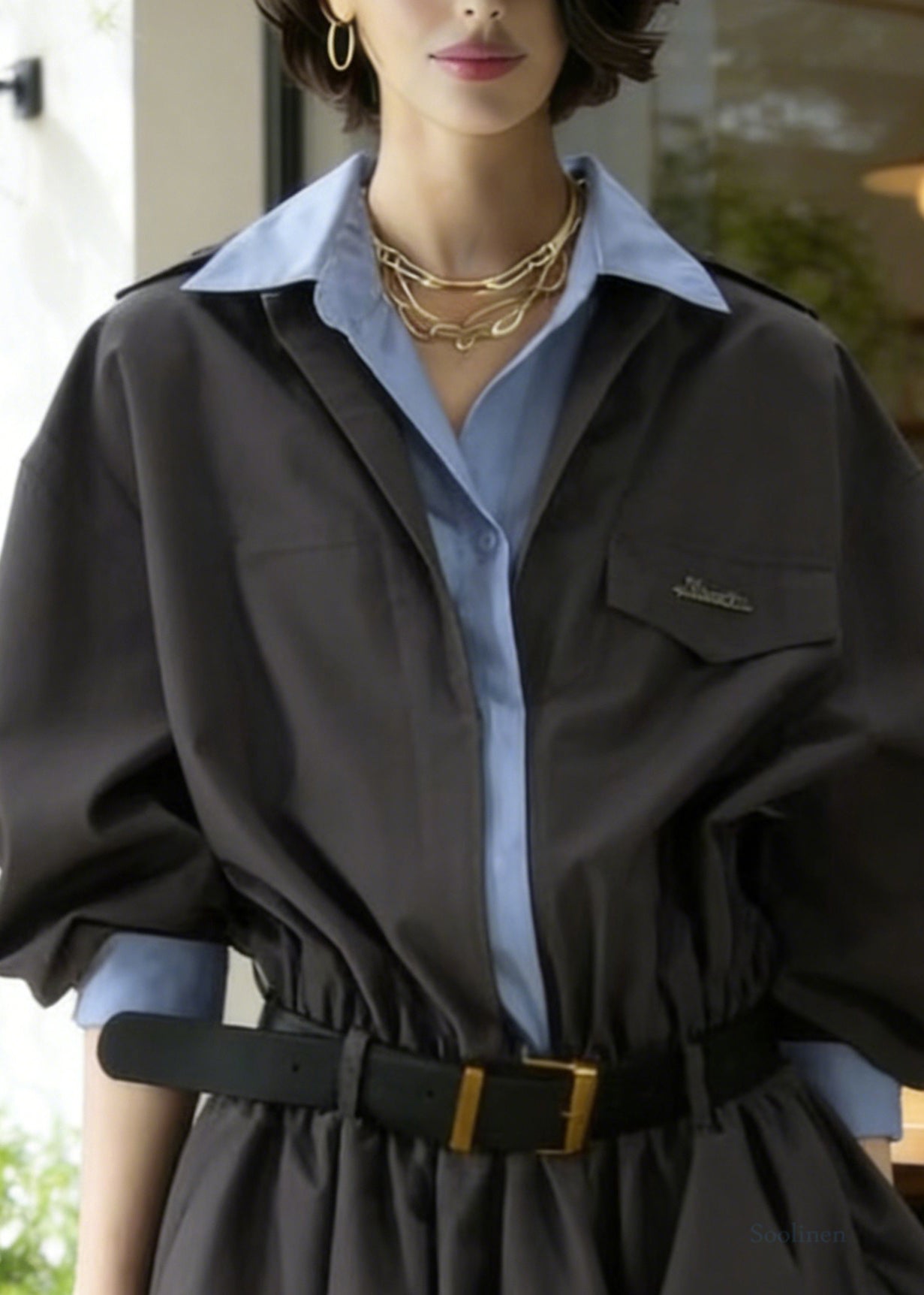 New Grey Button False Two Pieces Patchwork Cotton Shirts Dresses Spring