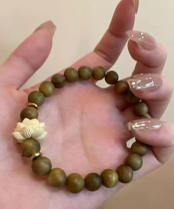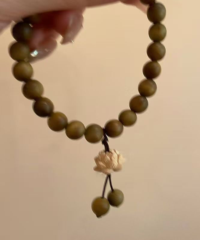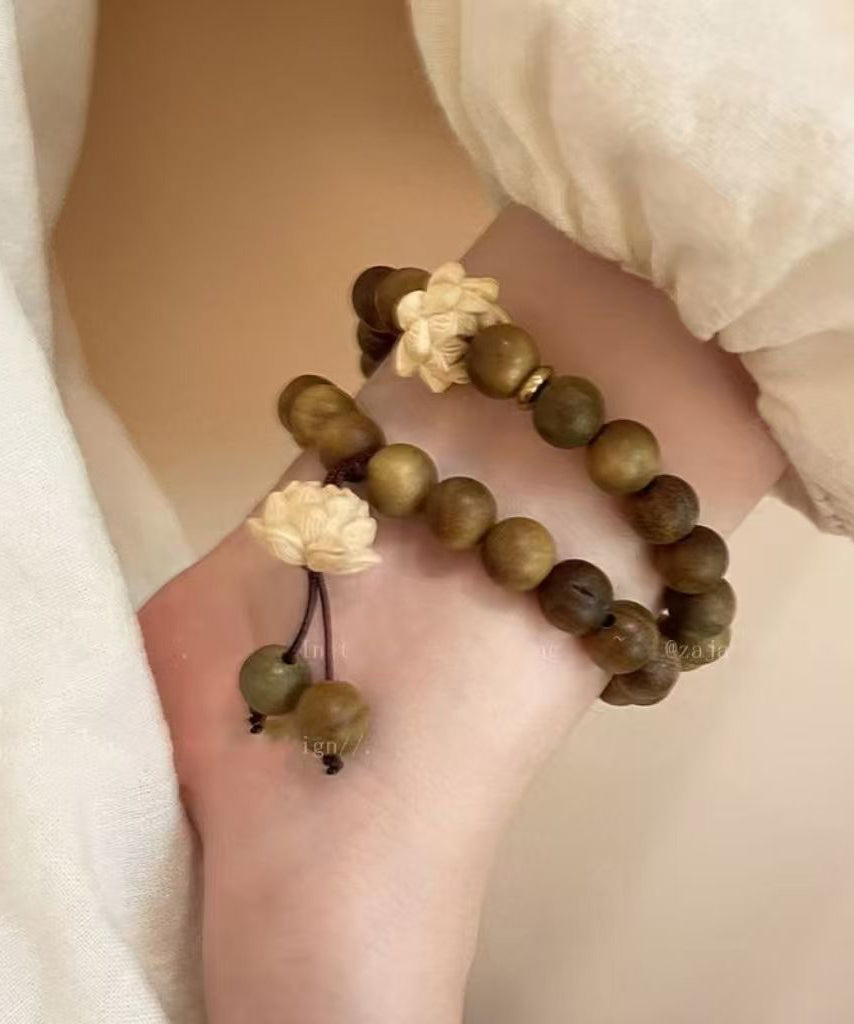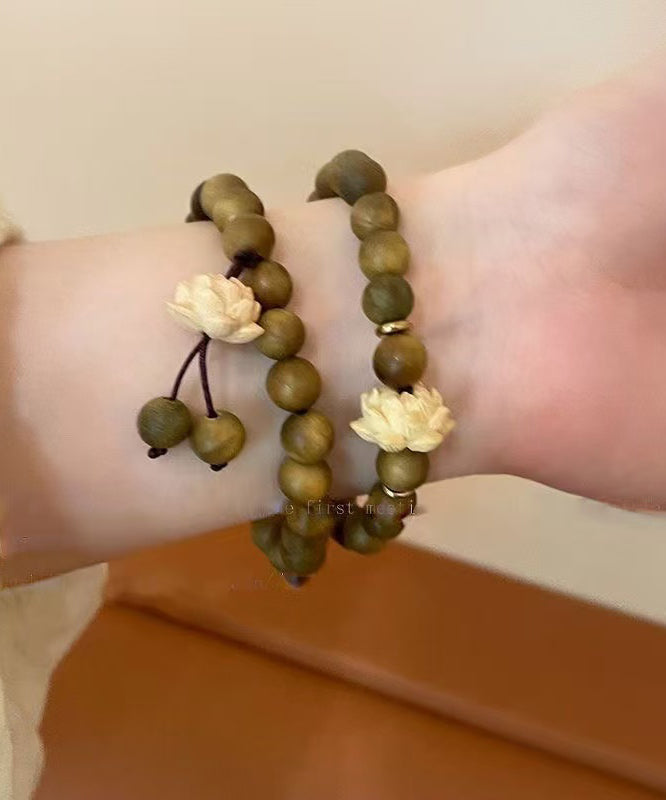 Handmade Brown Weaving Sandalwood Lotus Beading Two-Piece Set Charm Bracelet