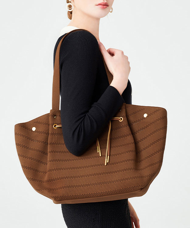 Women Brown Drawstring Striped Cotton Shoulder Bags