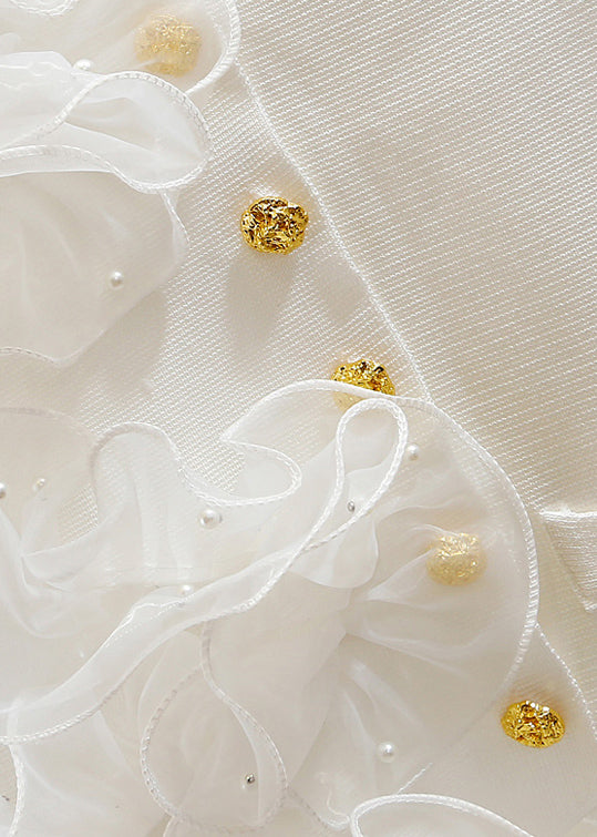 Chic White V Neck Button Tulle Patchwork Cotton Waistcoat Sleeveless