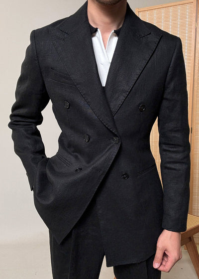 Black Button Pockets Linen Mens Coats Peter Pan Collar