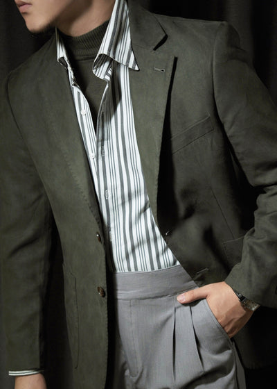 Vintage Army Green Button Pockets Faux Suede Men Coat Fall