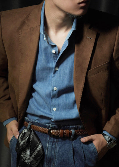 French Blue Double Breast Pockets Denim Mens Coats Fall
