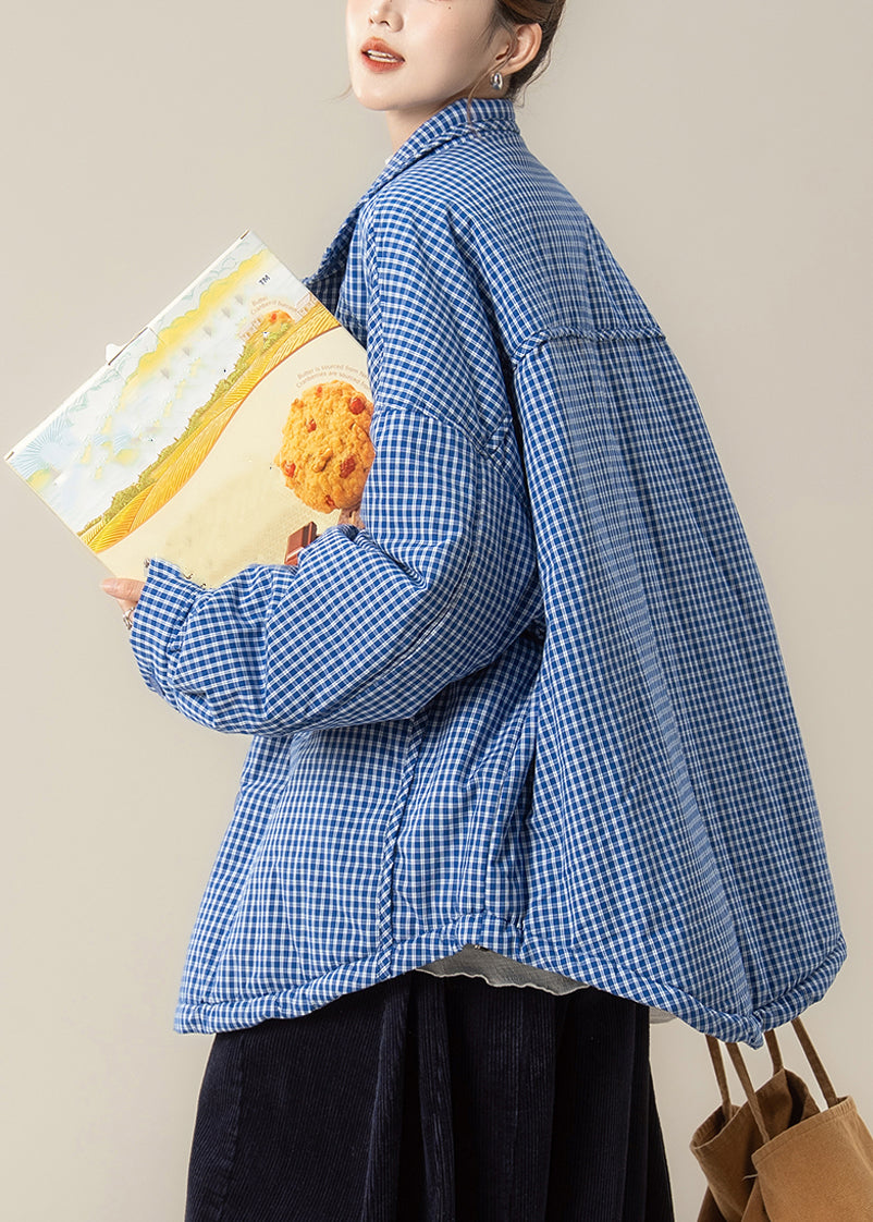 Plus Size Blue Peter Pan Collar Plaid Down Jackets Winter