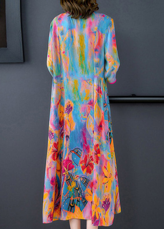 Plus Size O-Neck Print Silk Dress Long Sleeve