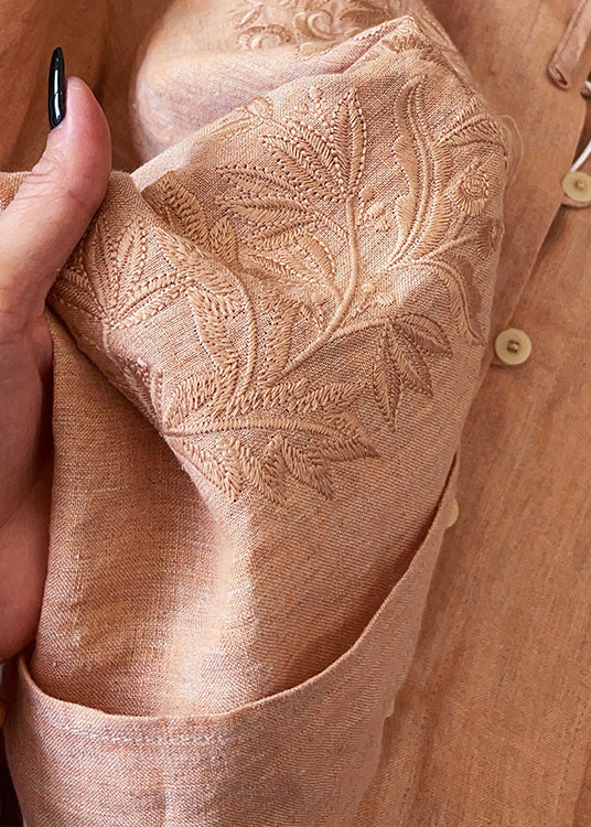 Loose Orange Embroidered Lace Up Cotton Shirt Tops Fall