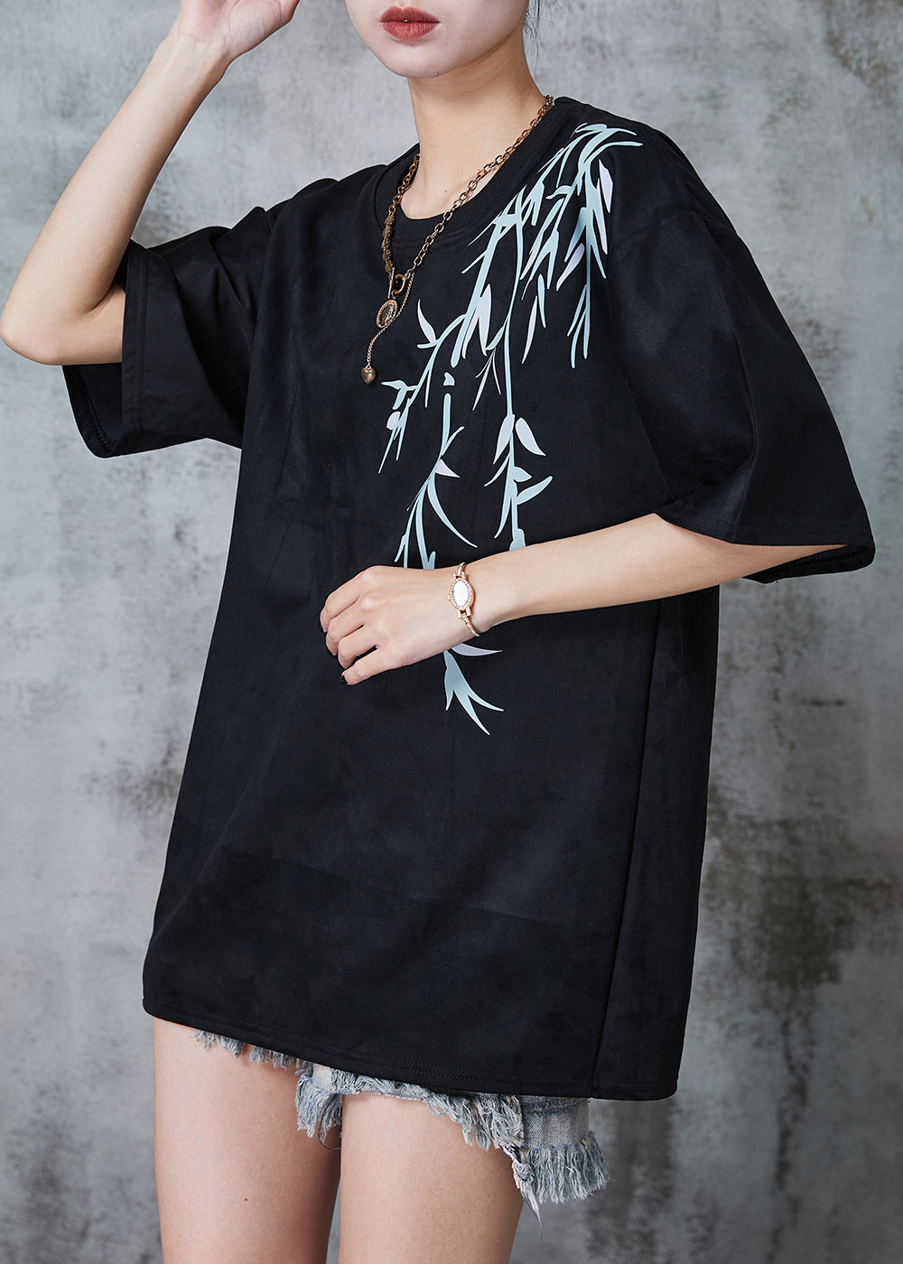 Women Black Oversized Print Cotton Tank Tops Summer