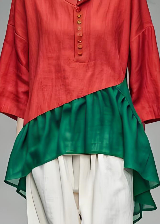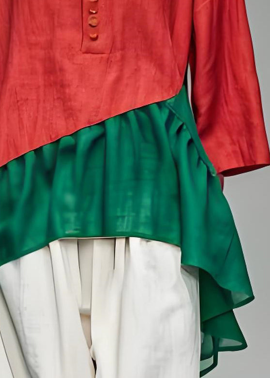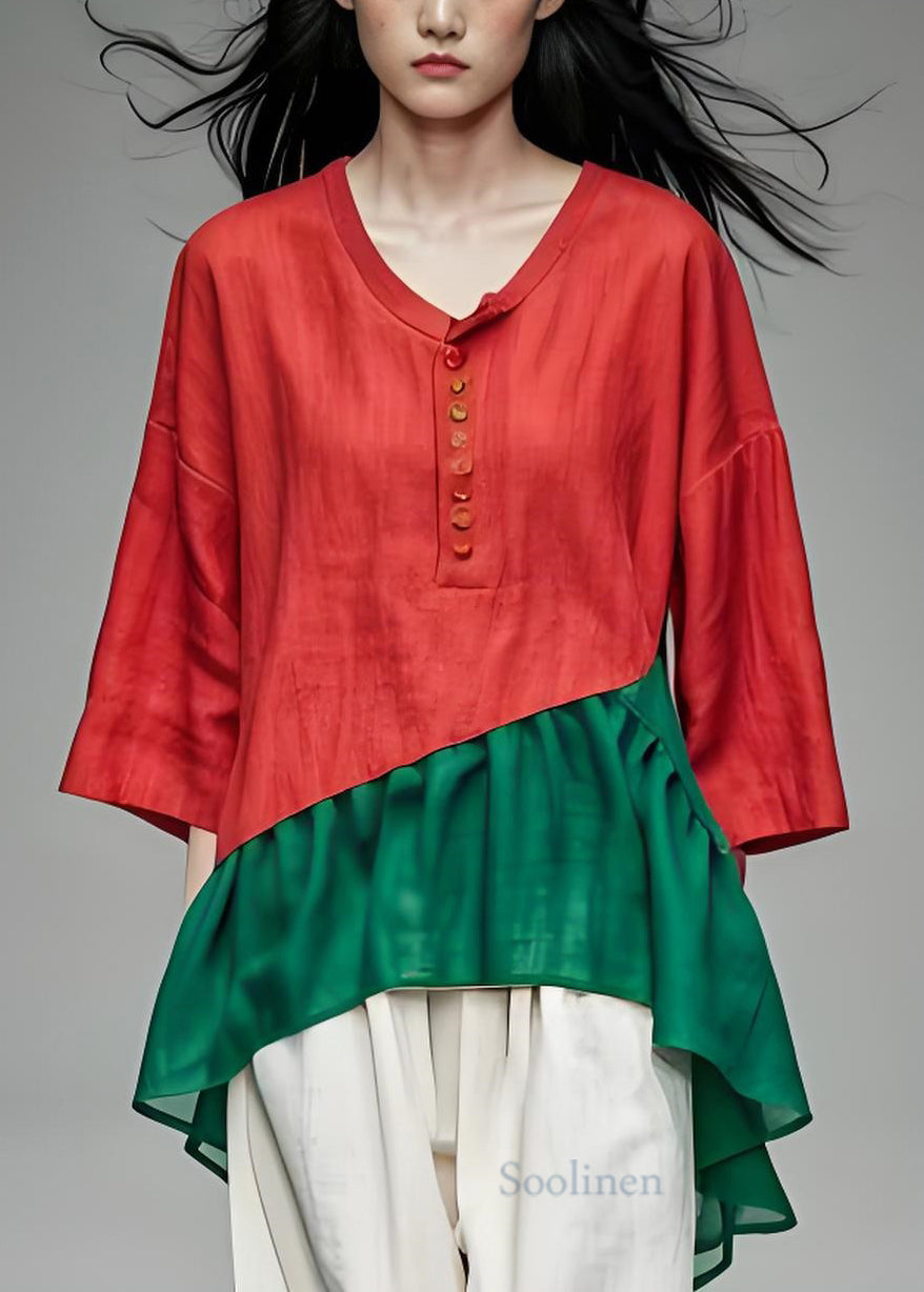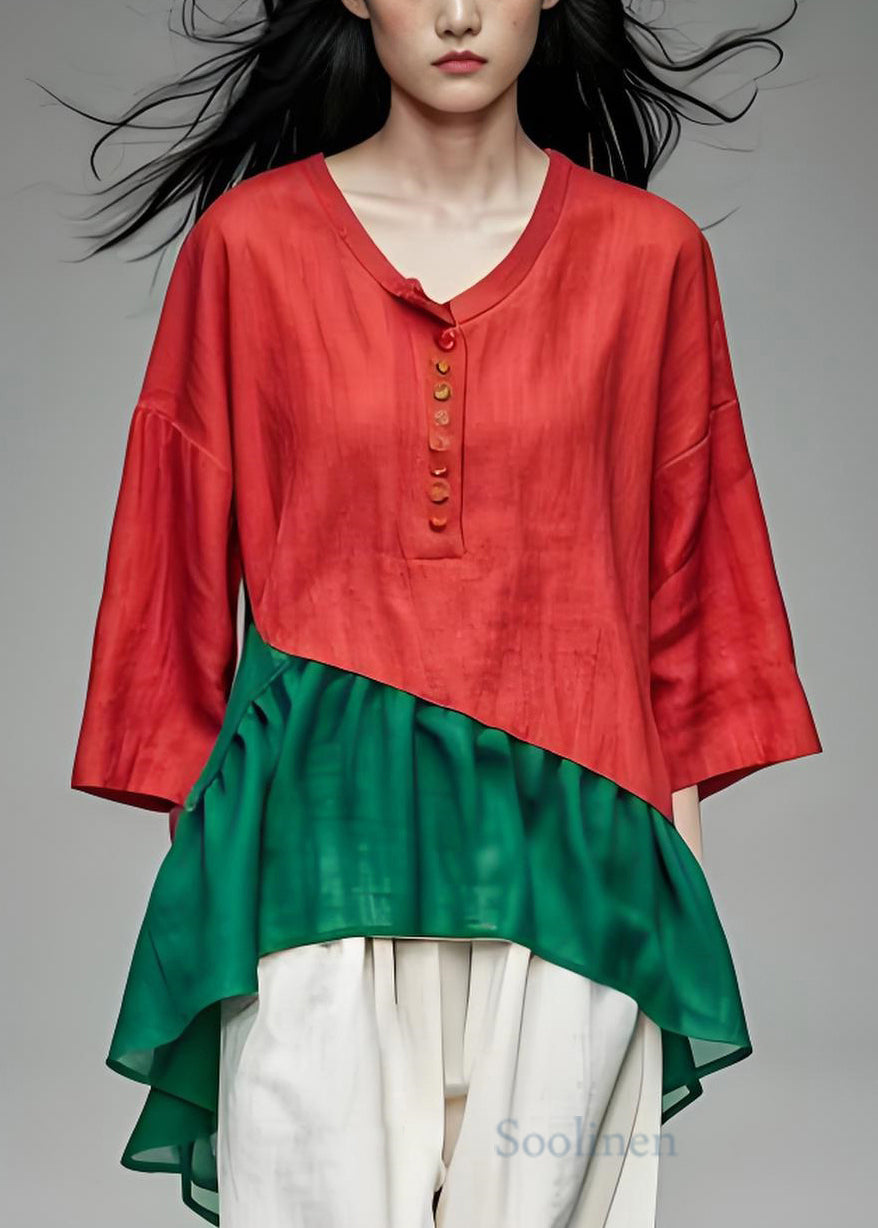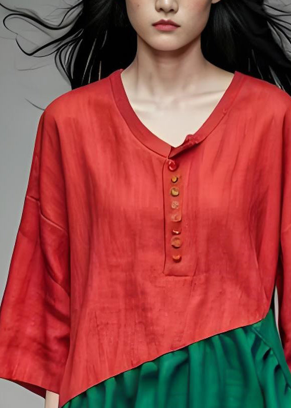Women Colorblock Low High Design Cotton Top Bracelet Sleeve