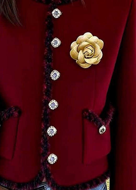 Italian Mulberry O Neck Pockets Floral Cotton Short Coat Spring