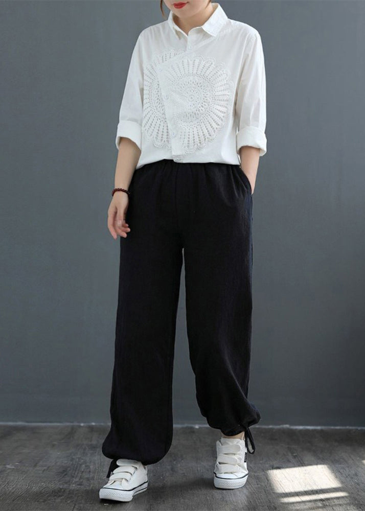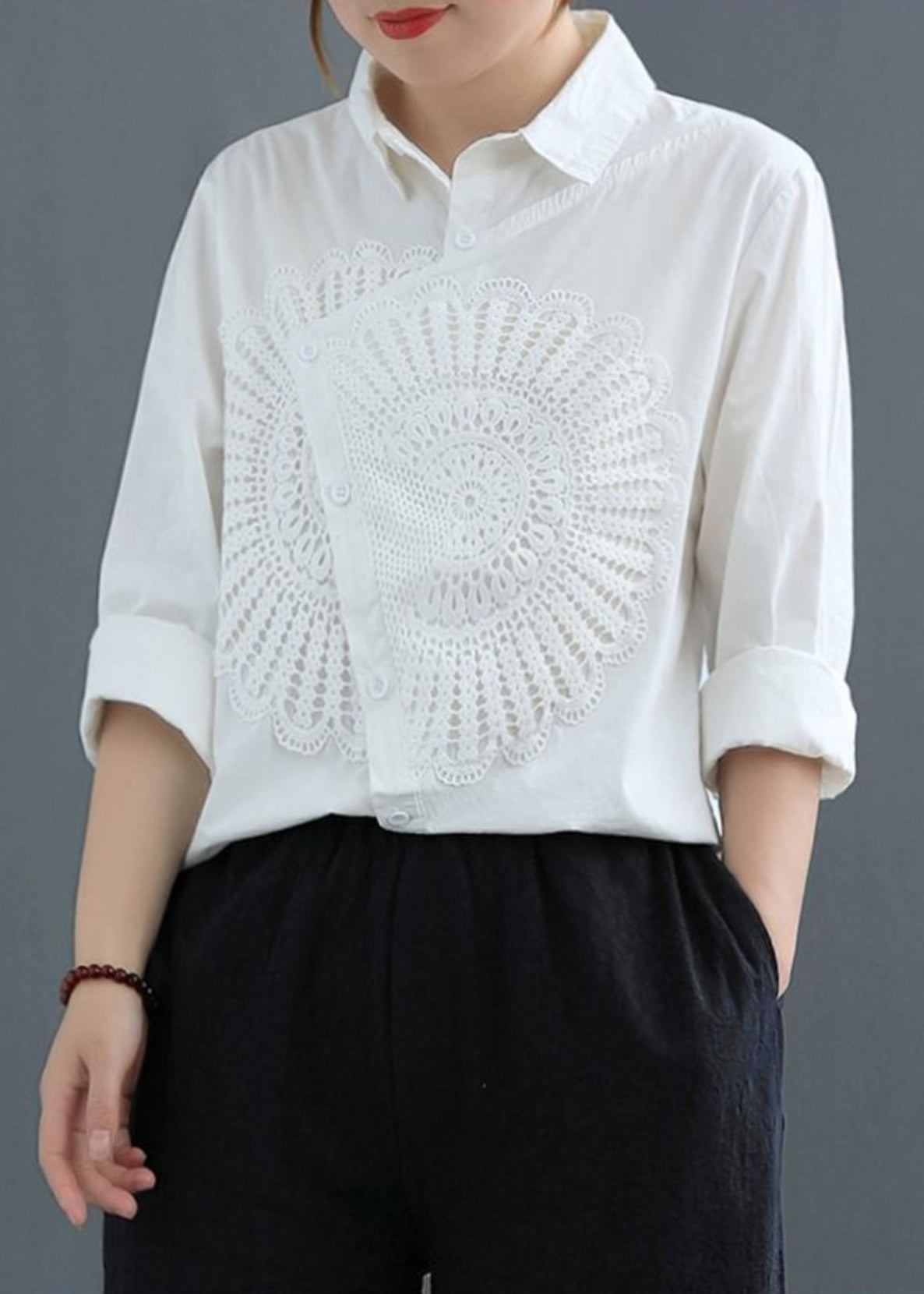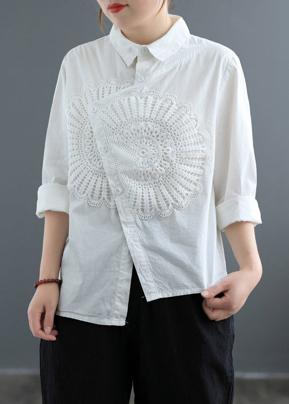 Classy White Asymmetrical Patchwork Lace Shirt Spring