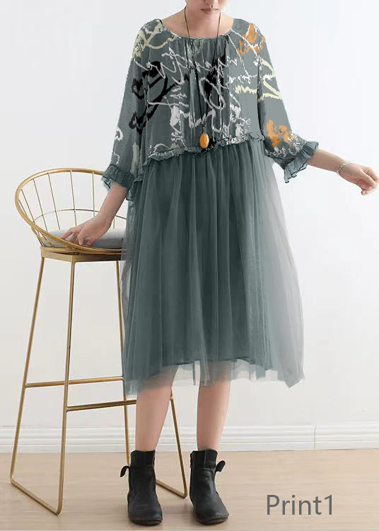 2021 Blue Tull Maxi dresses patchwork chiffon Summer Dresses - SooLinen