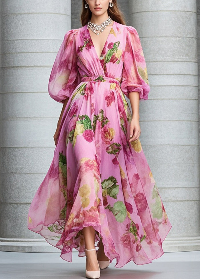 Boutique Rose Print Exra Large Hem Chiffon Maxi Dresses Fall