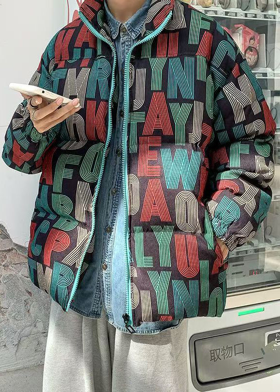 Style Navy Blue Zip Up Letter Pockets Men Parka Spring